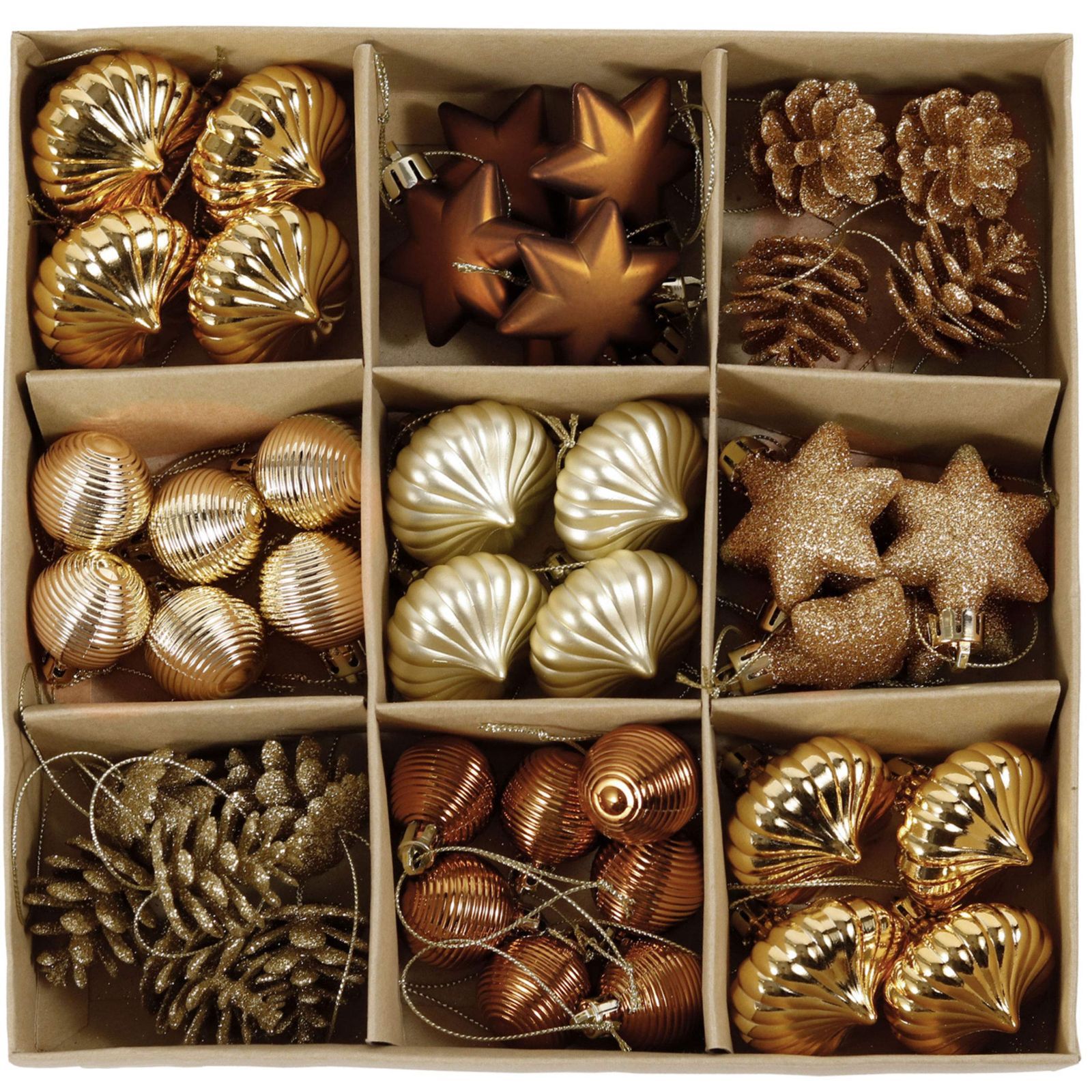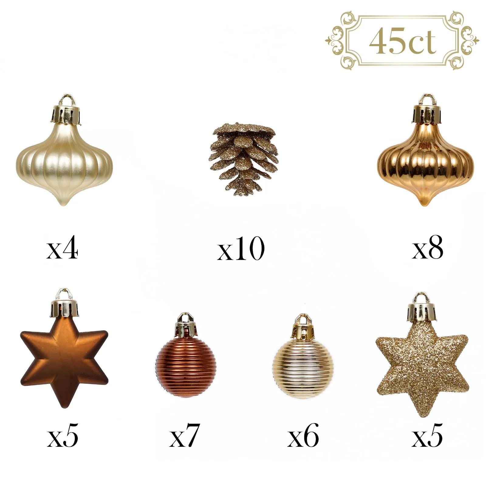 Valery Madelyn クリスマスツリー ボール 飾り オーナメント 45個入りセット ゴールド・コッパー 森 おしゃれ 雑貨 飾り付け デコレーション ユーロッパ風 北欧風 インテリア