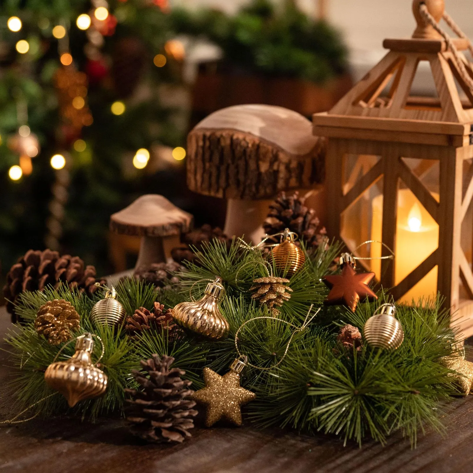 【豊富な選択】このクリスマスボールは古典な古銅色のテーマとよくマッチしていて、球形、星型、松かさ、鹿の角など多種の形状があり、セットの中の各製品はあなたの家庭装飾に豊富な選択を提供します。