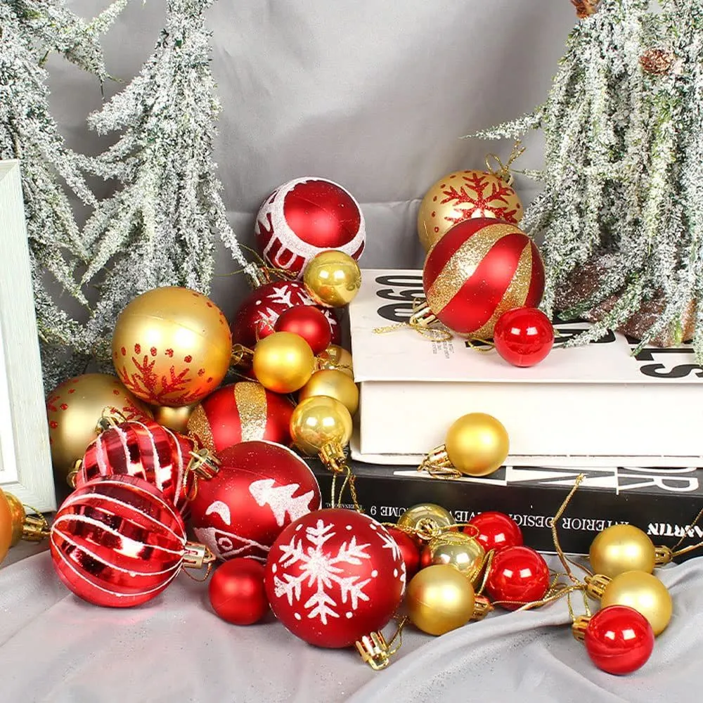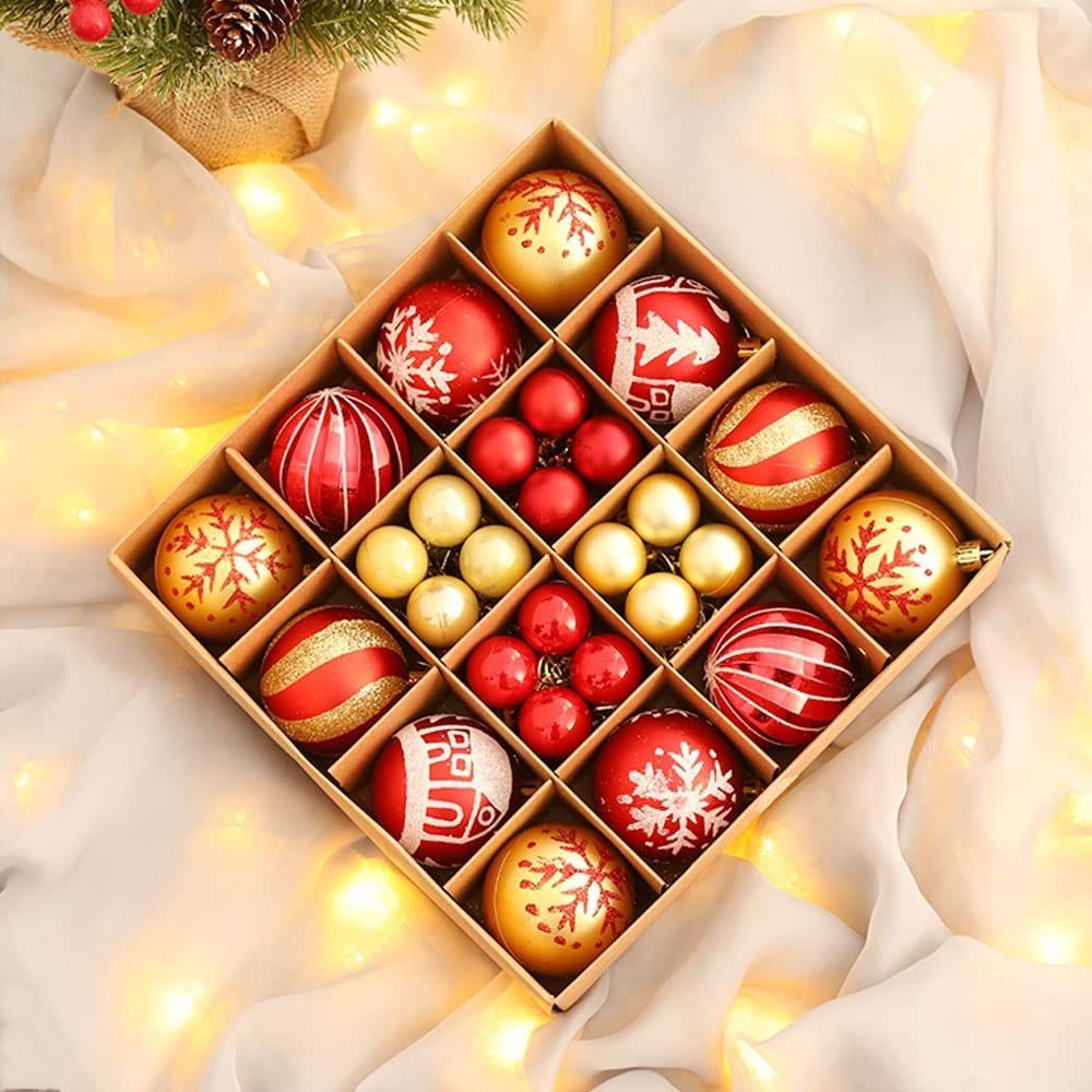 クリスマス オーナメント 豪華 44個入り ボール セット 北欧風 クリスマス ボール クリスマス ツリー 飾り 飾り付け おしゃれ ゴージャス 部屋 喫茶店 店舗デコレーション 新年 家庭用 雰囲気が 装飾 (レッド ゴールド)