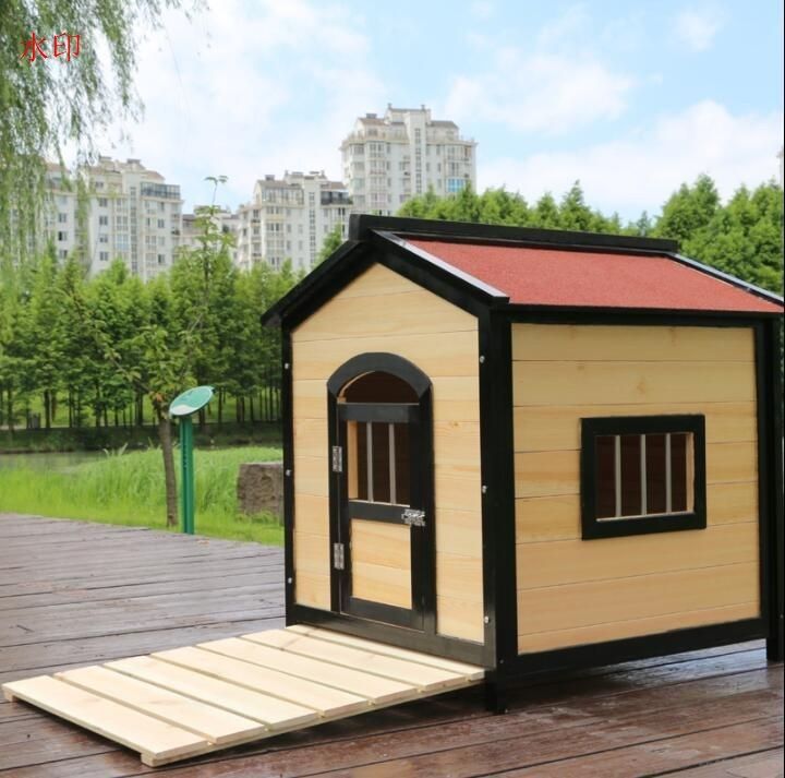 品質保証★屋外用★犬小屋 豪華別荘 組立式 松の木 木製 犬小屋 ペットハウス ドッグハウス 犬舎 三角屋根脚付き小型犬 中型犬用 ペット用品
