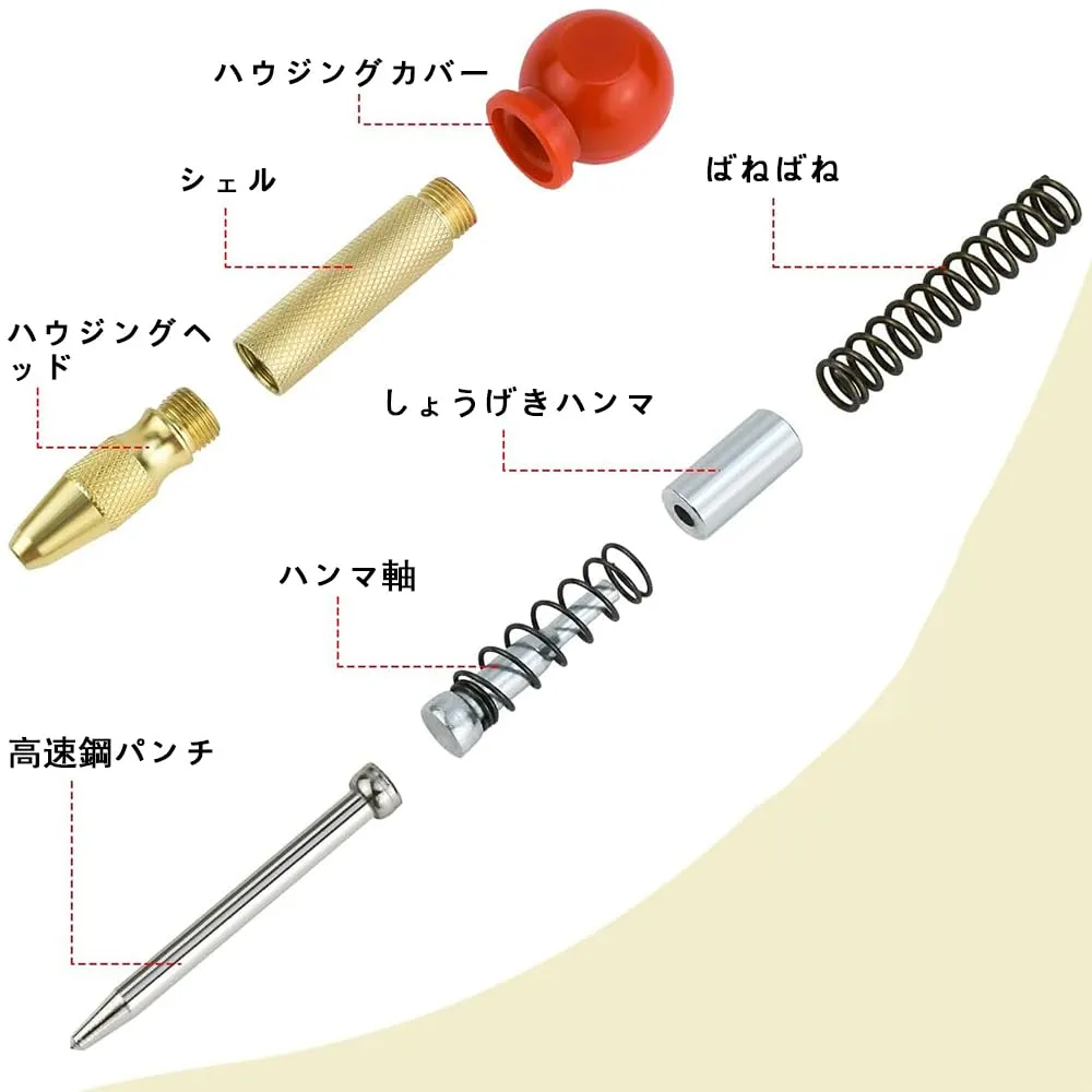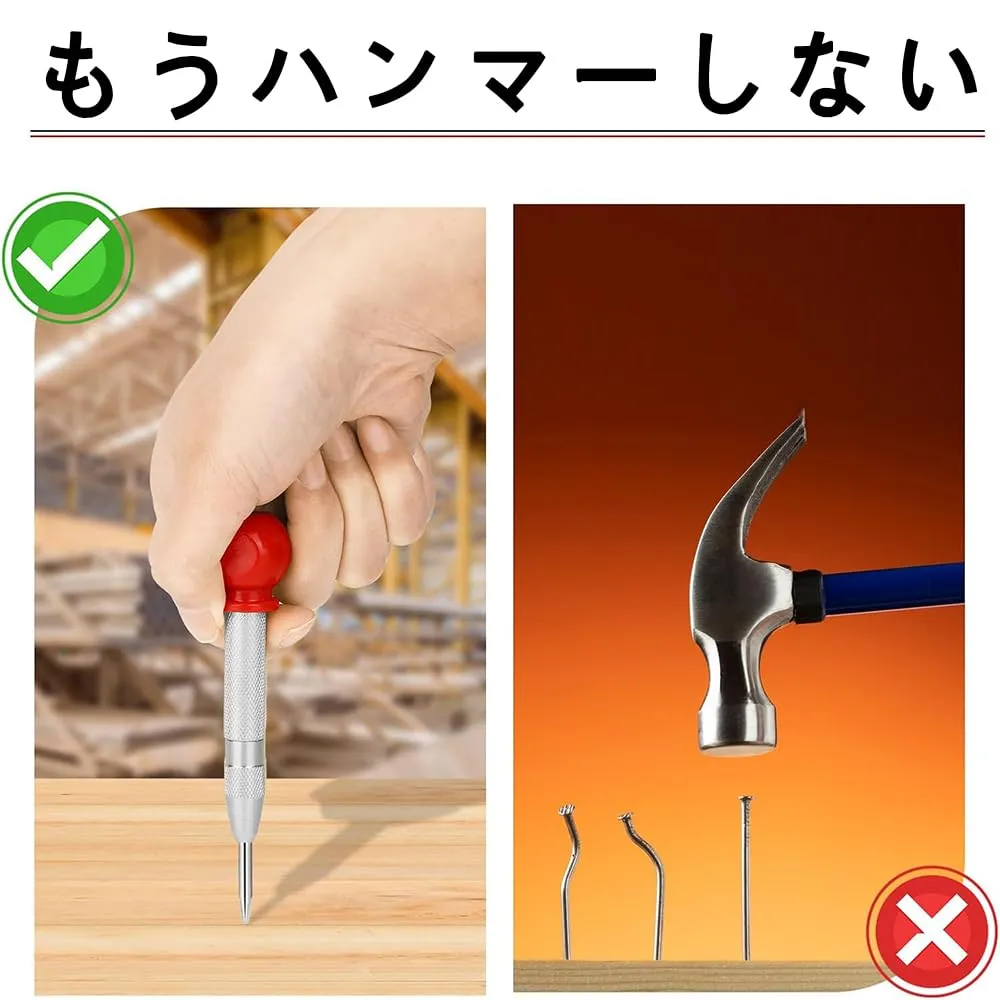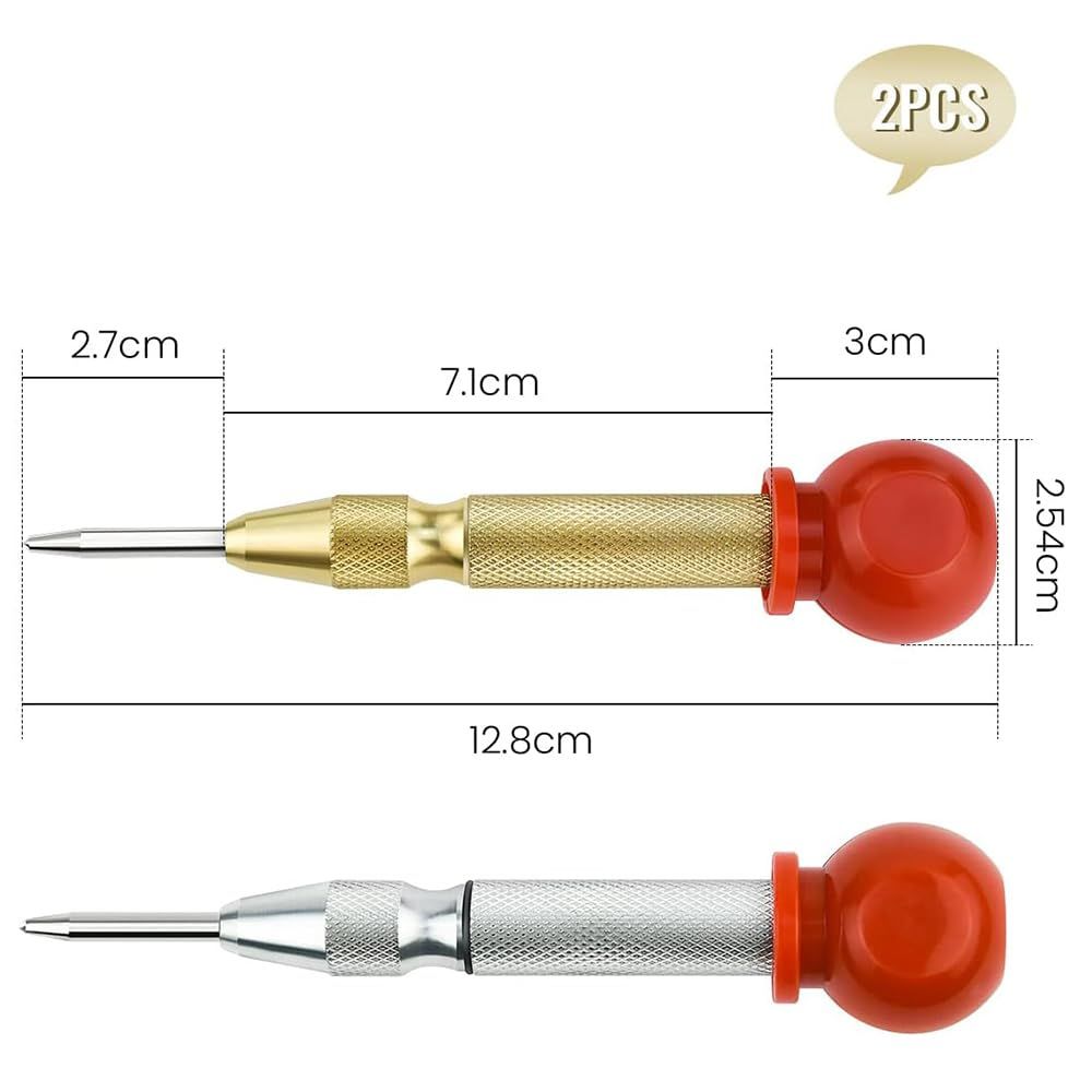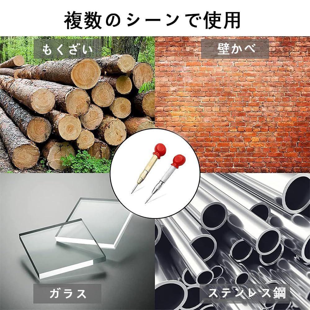 オートポンチ 穴あけ位置 2個セット 高速度鋼 調整可能な 持ち運び 掘削 簡単 便利 ガラス 木材適用 木工 鉄工用品 (金に赤帽+銀に赤帽)