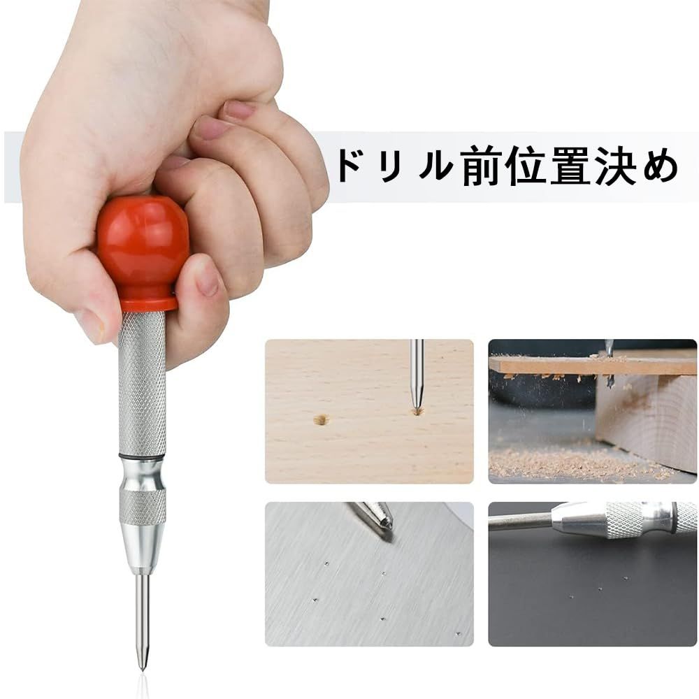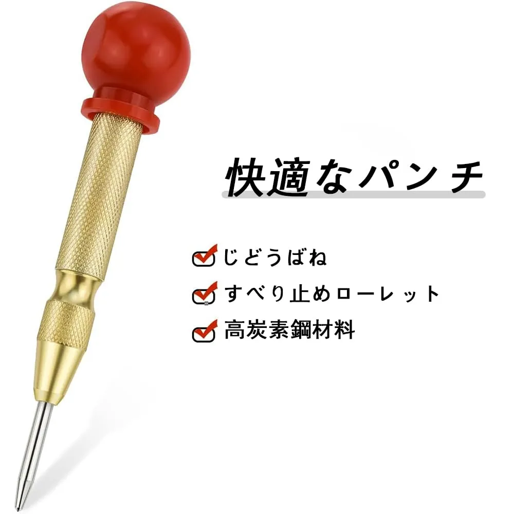 新品 オートポンチ 穴あけ位置 2個セット 高速度鋼 調整可能な 持ち運び 掘削 簡単 便利 ガラス 木材適用 木工 鉄工用品 (金に赤帽+銀に赤帽)