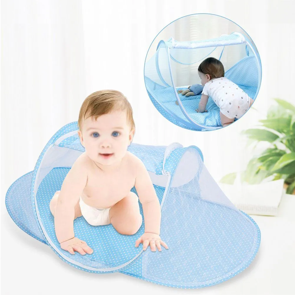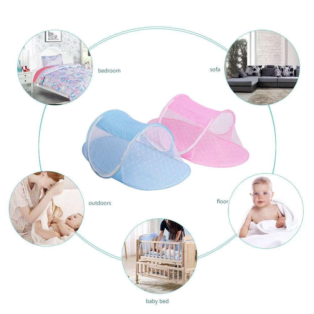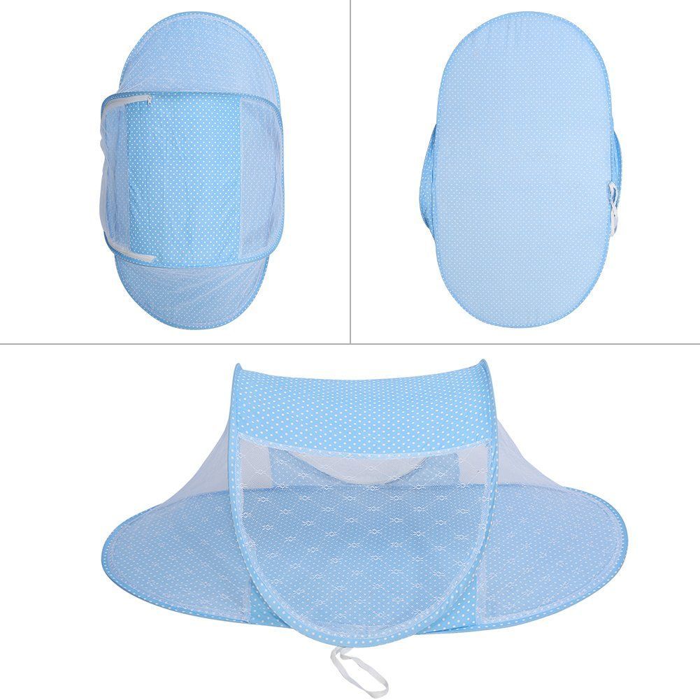 【24時間以内発送】折り畳め 虫除け ワンタッチ式 ムカデや蚊対策 蚊帳ベッド 通気性あり 安心かつ安全 ベビー用 小さ目の穴 蚊帳 赤ちゃん/幼児/ベビー(ブルー)