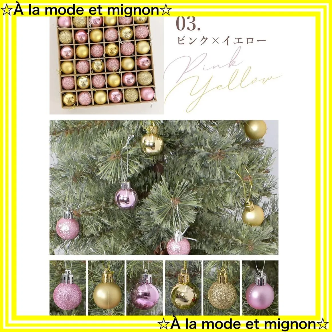 【即日発送&送料無料】 ☆A la mode et mignon☆をご覧いただきありがとうございます(^▽^)/ Z-CRAFT クリスマスツリー オーナメント カラフルボール 3cm 36個セット ピンク×イエロー 必ず本来の用途にのみご使用ください。 商品によって表面の塗装に個体差があります。 屋外での利用は避けてください。また、防水性能はありません。 直射日光や湿気の多い場所は避け、風通しの良い場所に設置、保管してください。 仕様上、オーナメントのラメが落ちる場合がございます。開封の際は掃除機がかけやすい場所か、床に新聞紙等を敷くのがおすすめです。 色 ピンク×イエロー ブランド Z-CRAFT 行事 クリスマス 材質 紙 テーマ クリスマス 対象ユーザー 叔母 叔父 妻 子供 付属コンポーネント なし 形状 円形 表示を増やす こちら、人気商品・数量限定になりますので ご購入はお早めをおススメいたします