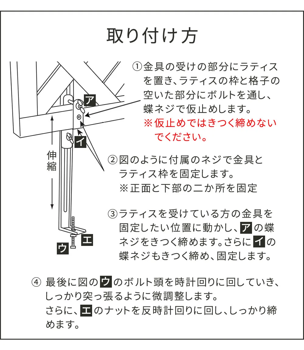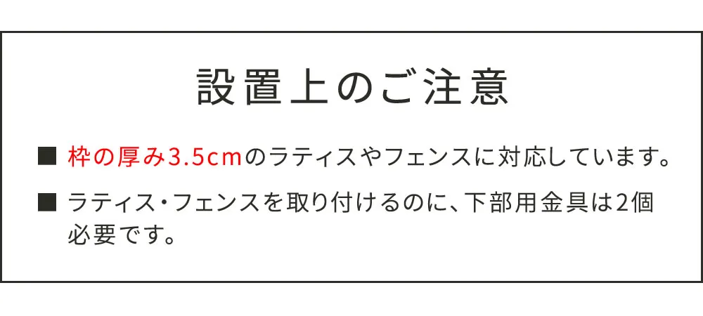 ●ラティス・フェンス壁面用固定金具(8個セット) 「下部用の購入ページです」 ベランダや塀などのコンクリートフェンスに、ラティスやフェンスを固定したい時に。 ※上部用は別売りです。 ※お庭やベランダ、店舗、公園等に、ラティスやフェンスを自作できる金具シリーズです。空間を仕切るだけでなく、日よけや、ディスプレイのベースとしても活用でき、DIY初心者さんでも簡単設置が可能。まるで作り付けのようなフェンスが設置でき、見映えのするエクステリアに。自宅に癒しの空間を。