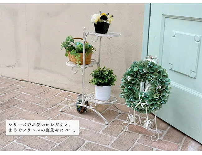 ■生産国 中国 ※北海道・沖縄・離島は別途送料が必要となります。 ホワイトアイアン "ブランティーク" シリーズ一覧 ・傘立て ・イーゼル ・ベンチ ・テーブル&チェア3点セット ・テーブル ・チェア2脚セット ・シェルフ3段 ・トレリス2枚セット ・トレリス4枚セット ・フラワースタンド丸型 ・フラワースタンド縦型 ・フラワースタンド3点セット