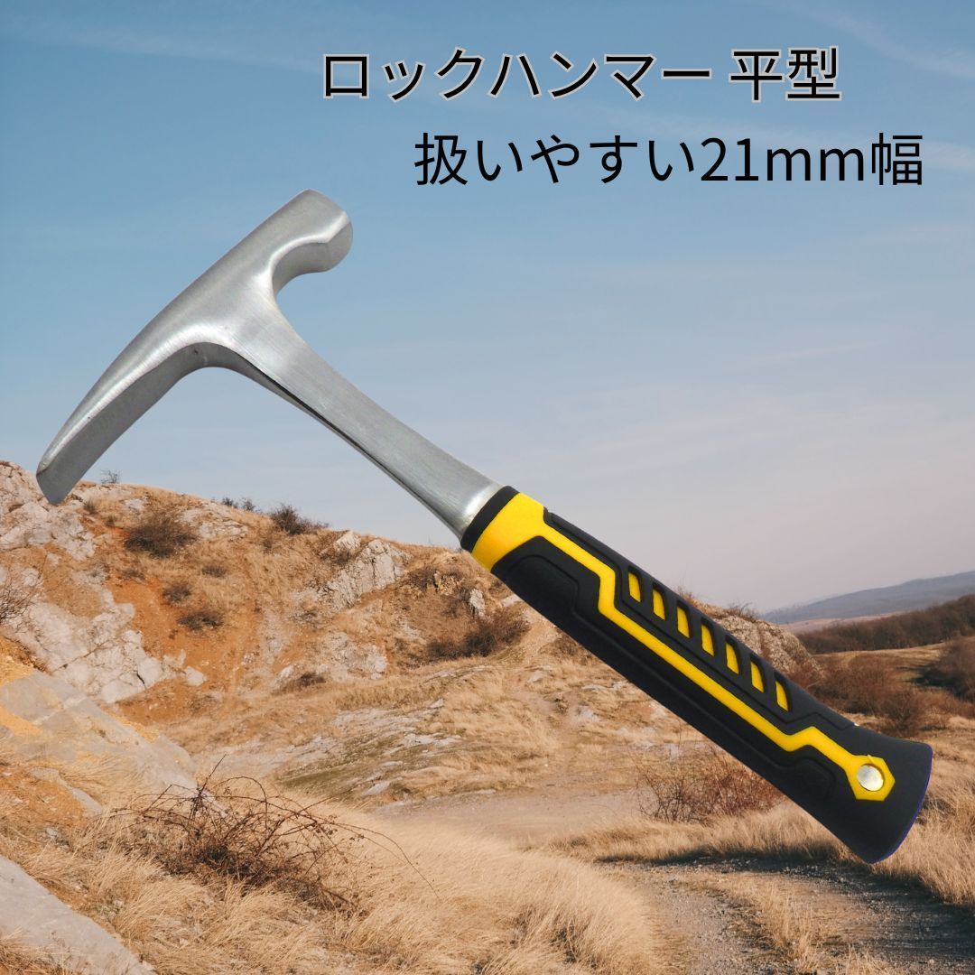 【新品】ロックハンマー 平型 高炭素鋼 衝撃吸収グリップ 地質調査 砕石 頑丈