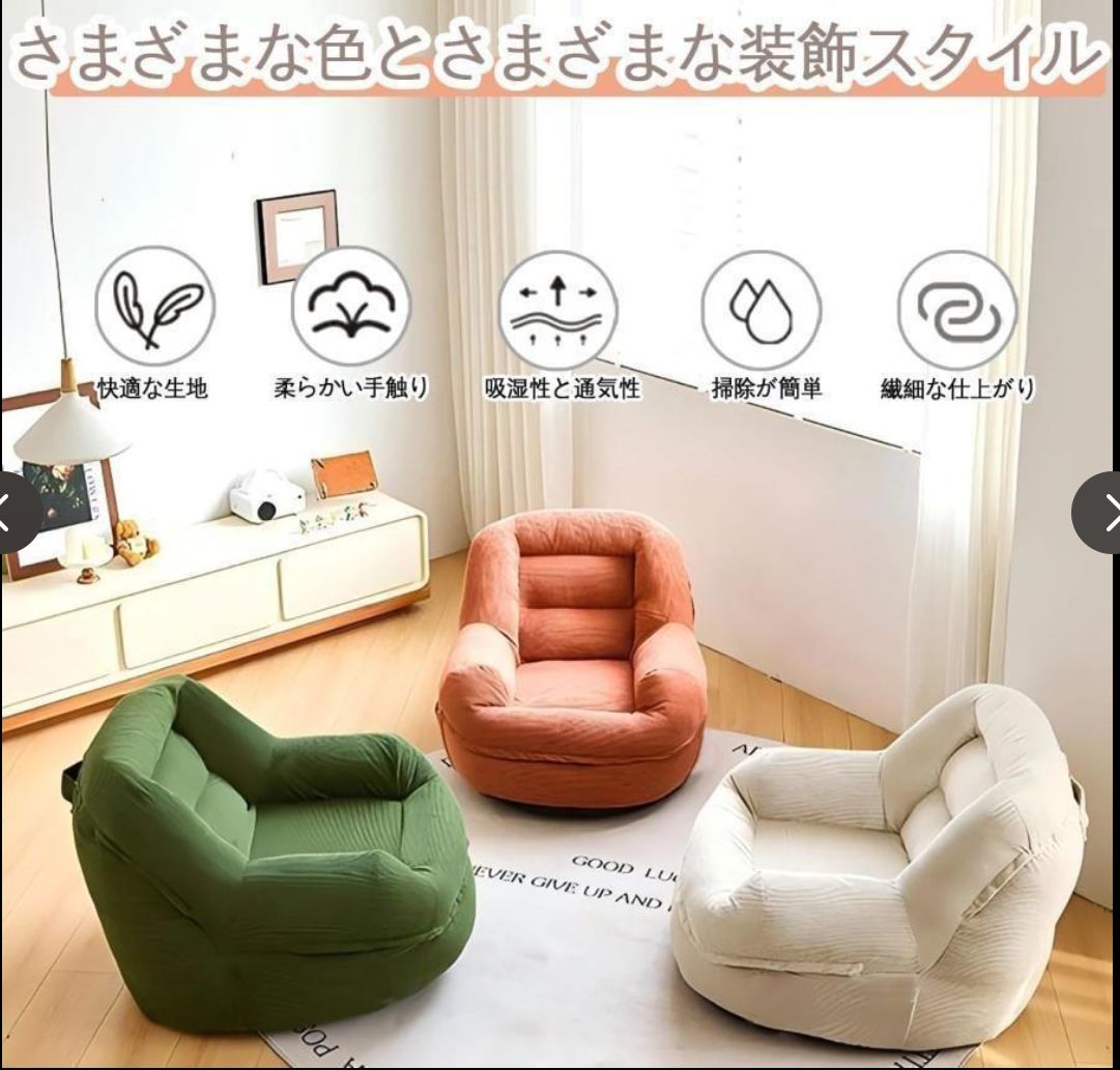 大好評☆ソファ 一人掛け ビーズクッション長持ファブリック生地 座布団 豆袋 軽量 一人用 チェア 椅子 おしゃれ ローソファ フロアソファ モダン スタイリッシュ デザイ