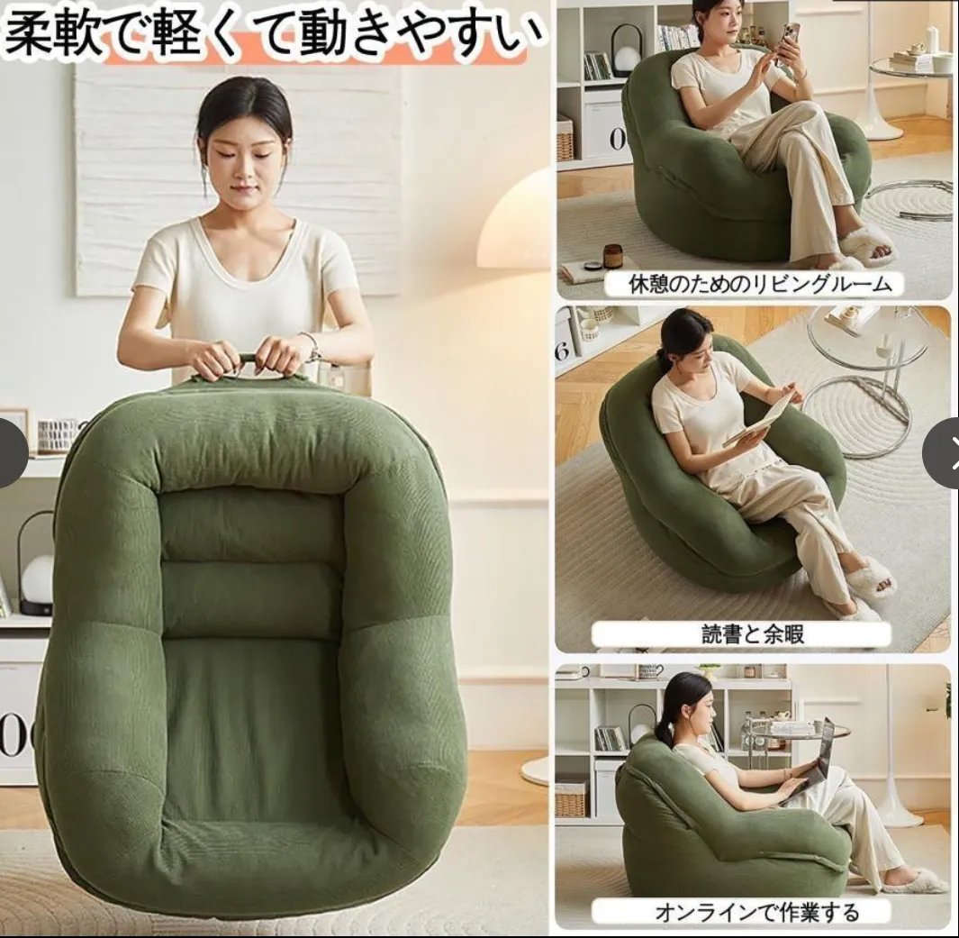 【理想的なサイズと利便性】サイズは82 * 74 * 62cmで、軽量3kgの一人掛けソファーです。省スペースでありながら、快適な座り心地を提供し、どこにでも置けます。部屋のレイアウトを変更する際や、外で使う際にも便利で使いやすいアイテムです。