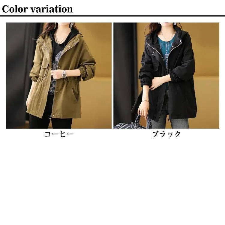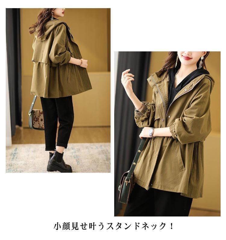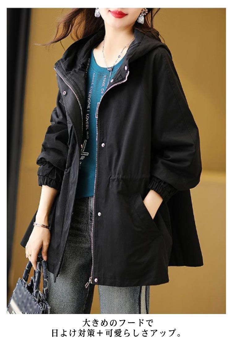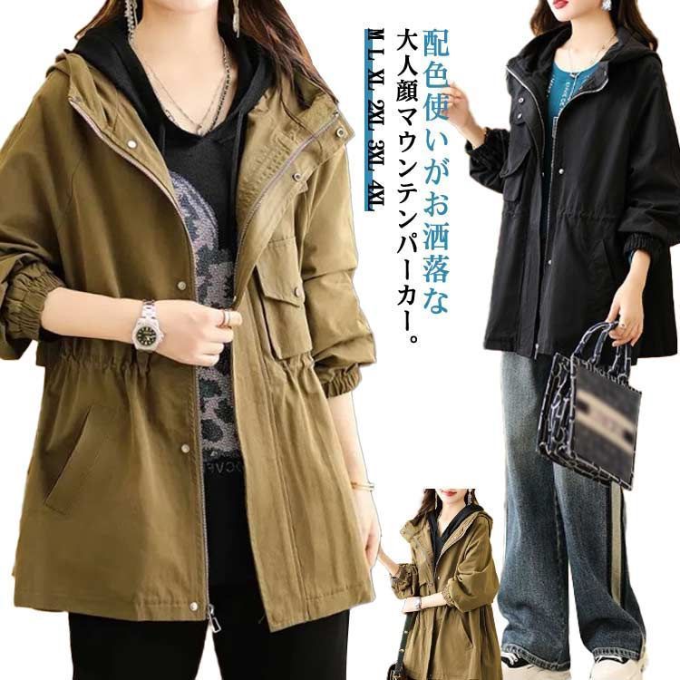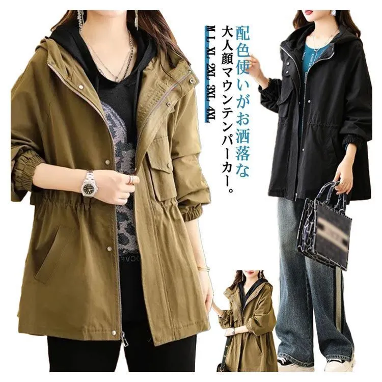 マウンテンパーカー レディース アウター フード付き 長袖 アウトドア ブルゾン ジャケット ゆったり 大きいサイズ ミディアム ライトアウター 小顔 体型カバー お尻が隠れる 春
