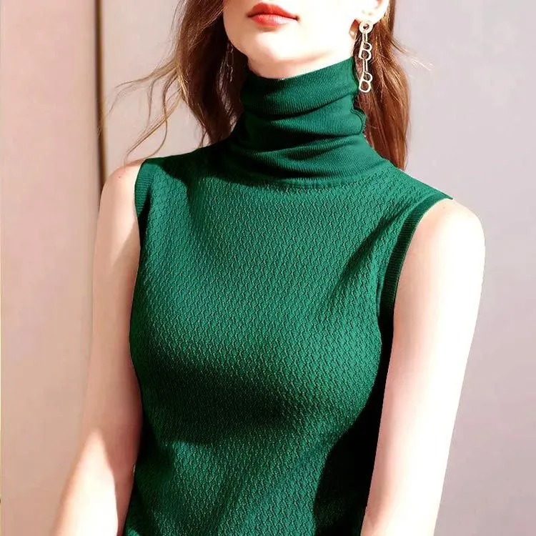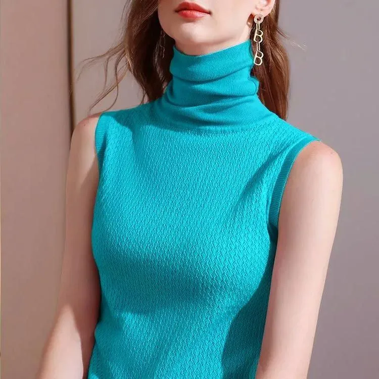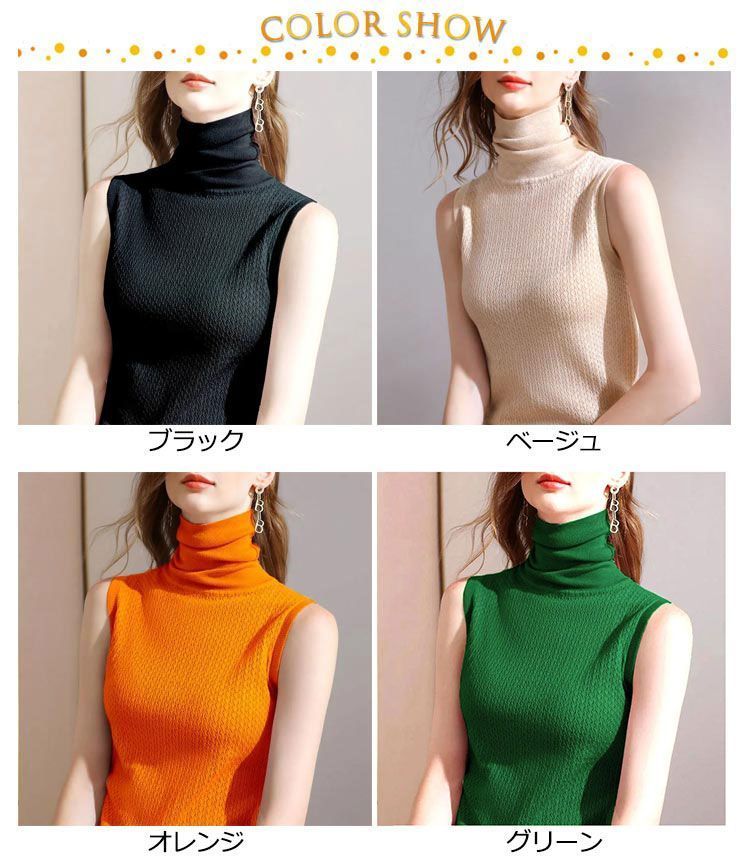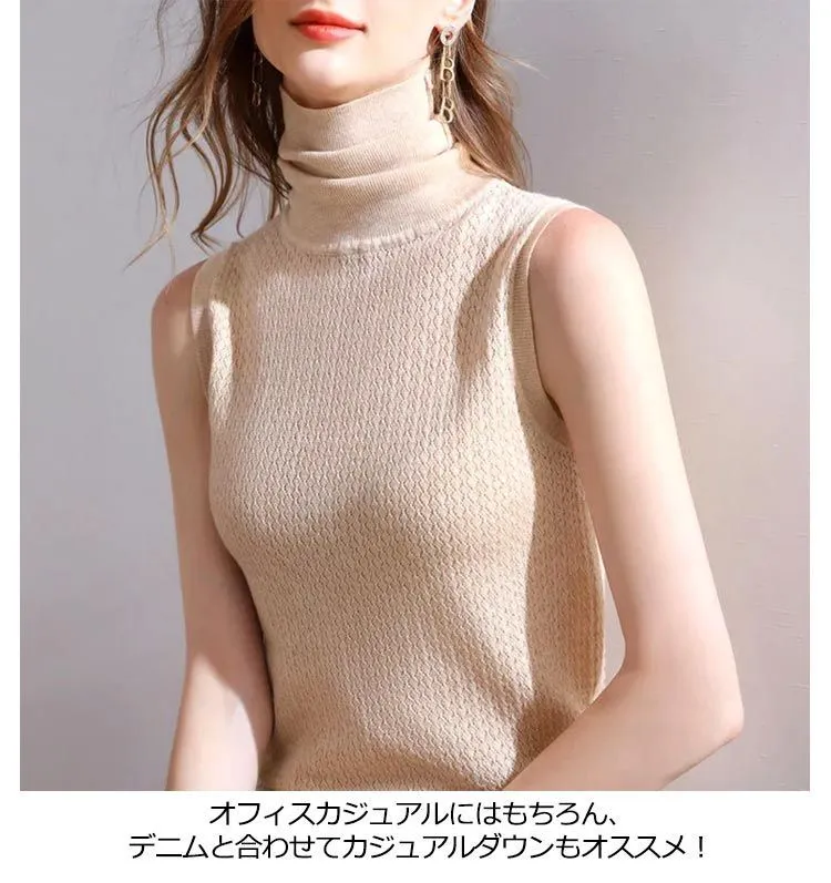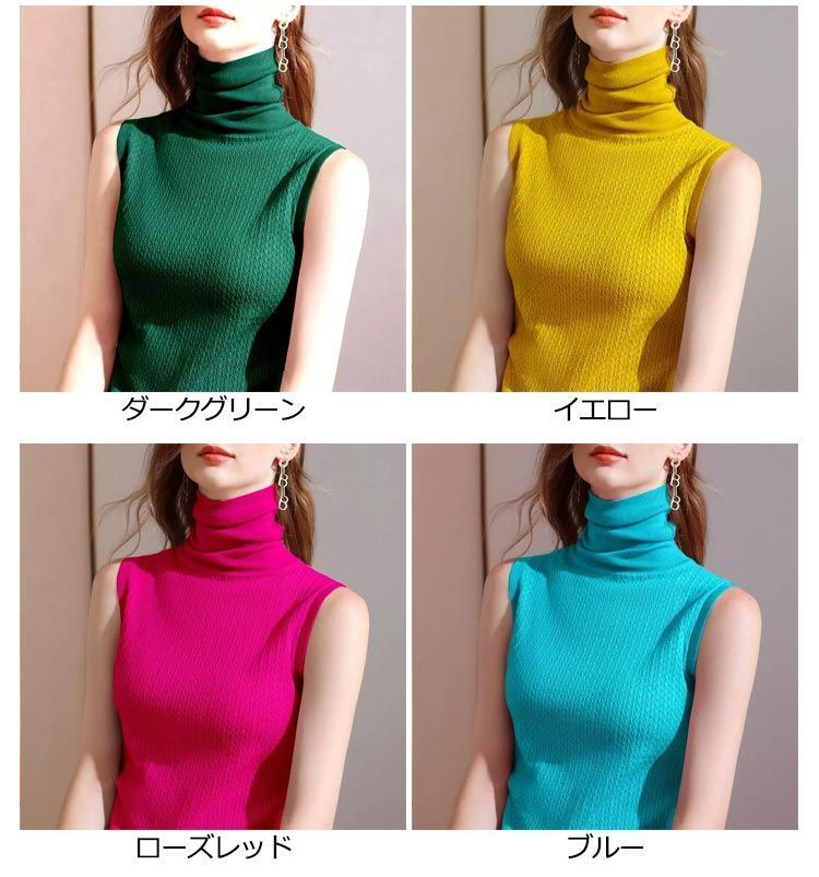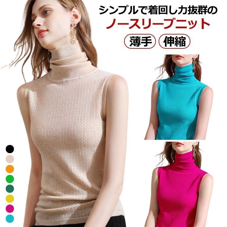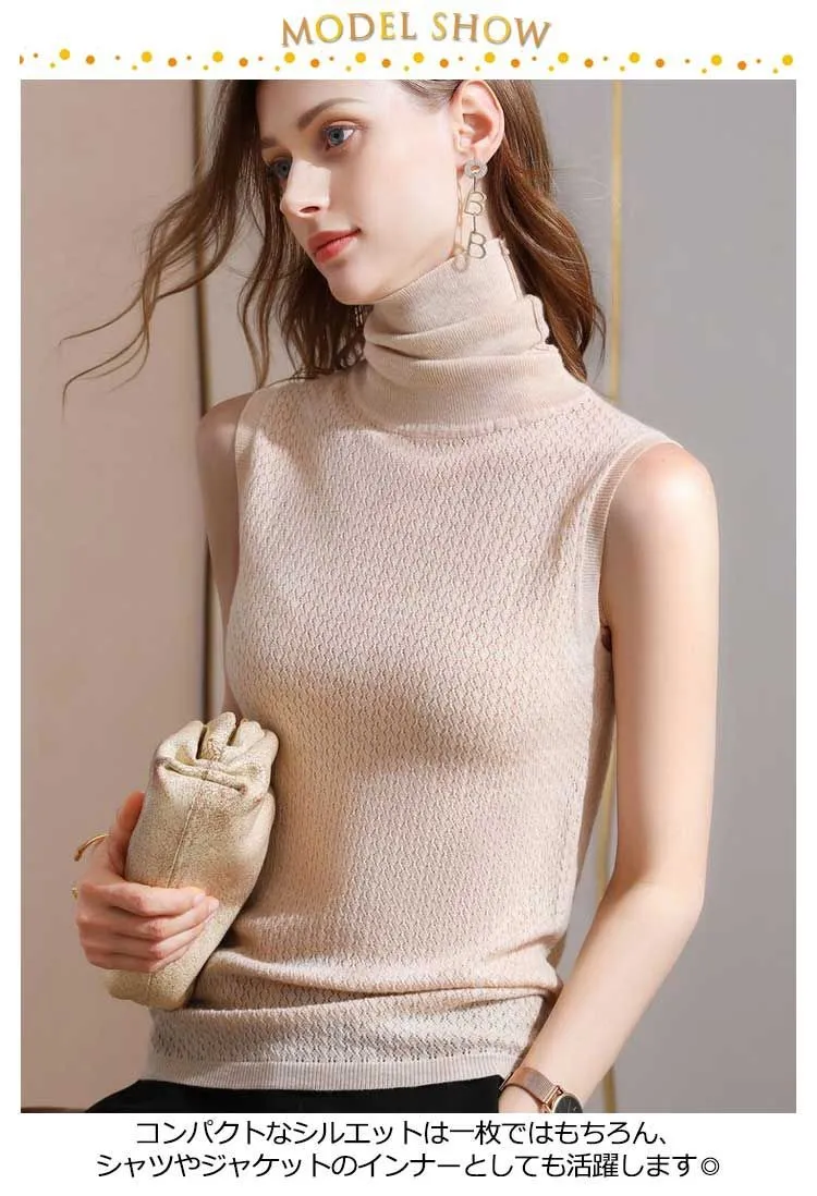 タンクトップ トップス ニット カットソー レディース ノースリーブ タートルネック ハイネック キャミソール インナー 薄手 伸縮 ストレッチ 無地 オフィス カジュアル 春 夏 サマーニット