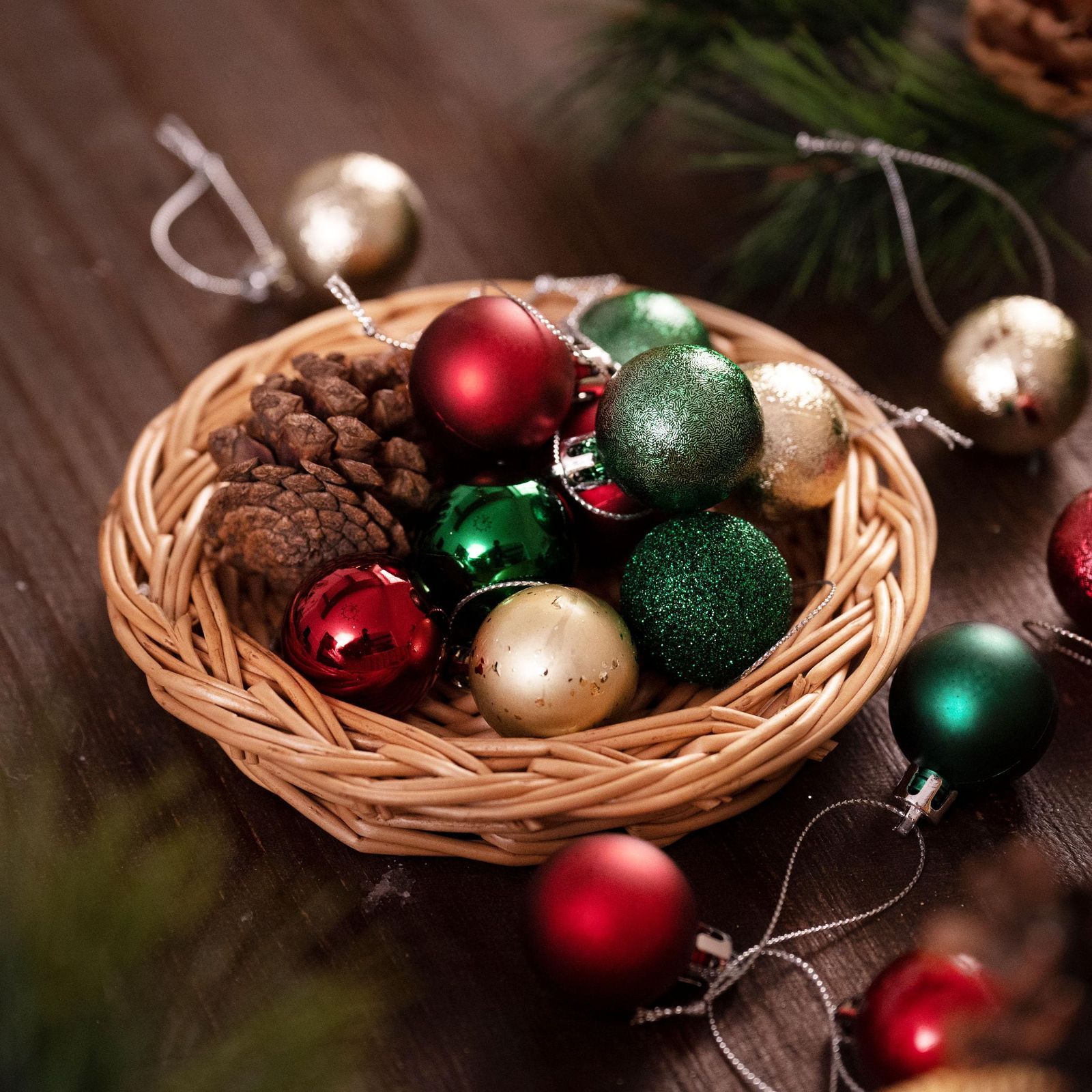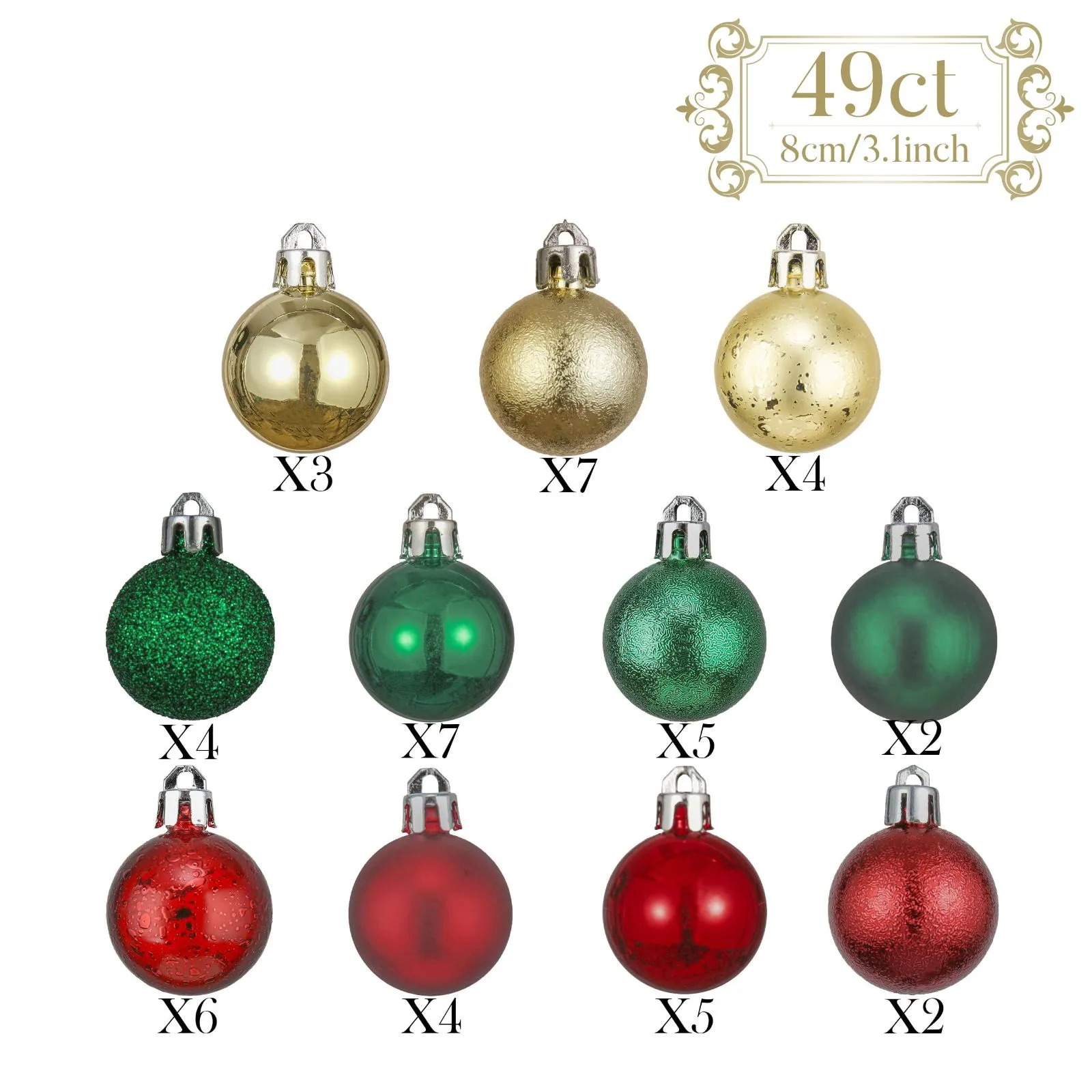 【パッケージとサイズ】クリスマスオーナメントセットには、赤緑金のクリスマスボール49個が含まれています。各ボールはシームレス接続を採用し、洗練された外観を作り出しています。ボックスには高品質のエコボール箱を採用し、贅沢感を加えます。