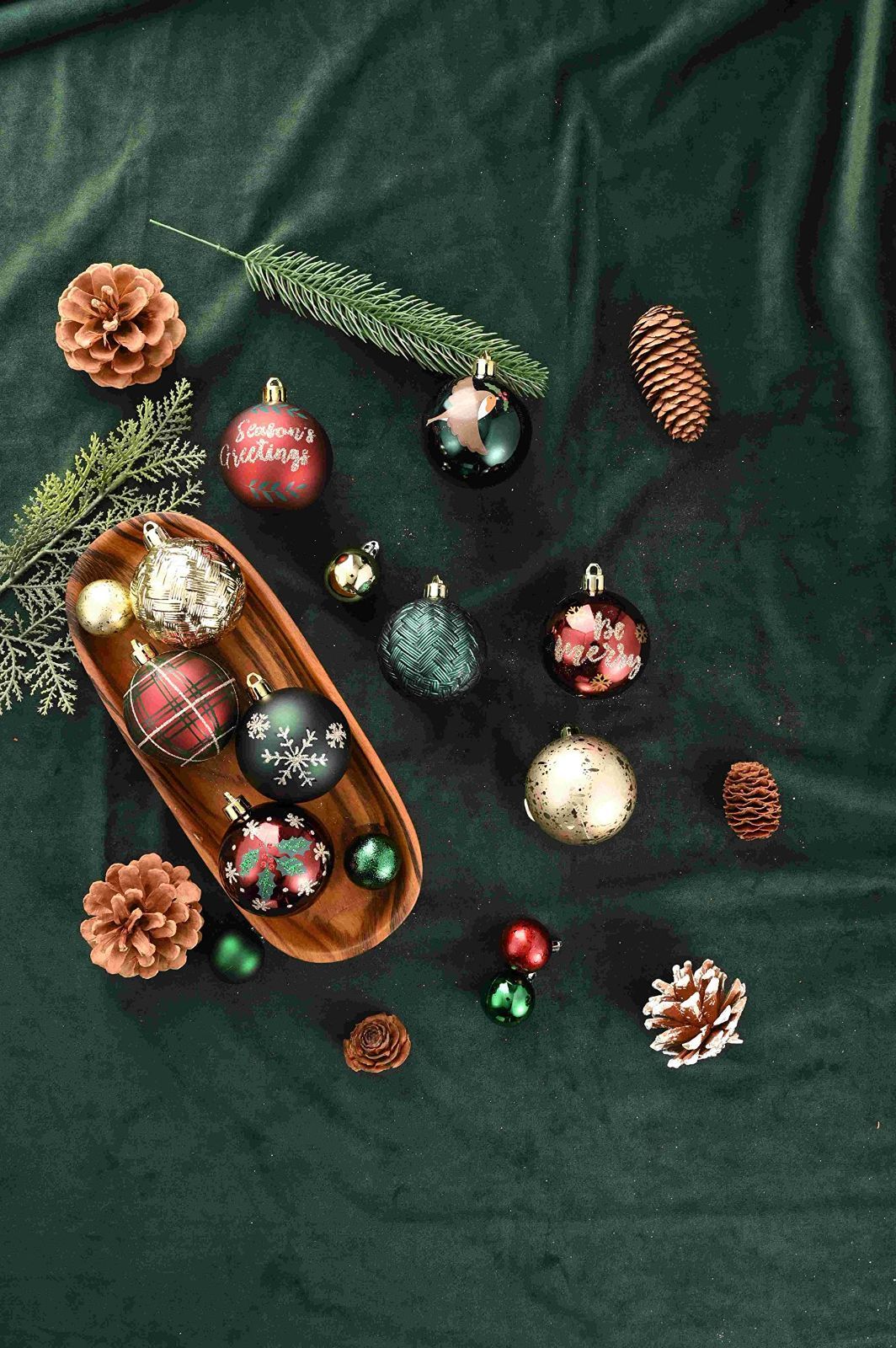 【豊富な選択】このボールセットは赤緑金のテーマで、さまざまな柄があり、セットの中の各色の製品はあなたの家庭装飾に豊富な選択を提供します。