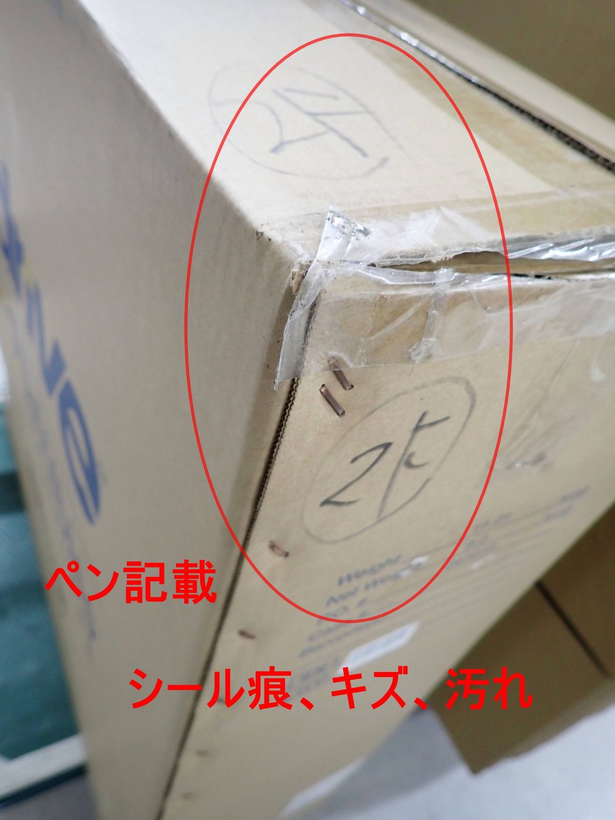 外箱には、キズ、汚れやシール痕、ペン記載などのダメージがあります(4枚目の画像をご参照ください)。