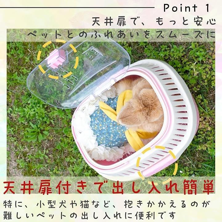 「持ち運びラクラクな取っ手付き」取っ手が付いているので、持ち運びが簡単で、飼い主さんの負担を軽減します。