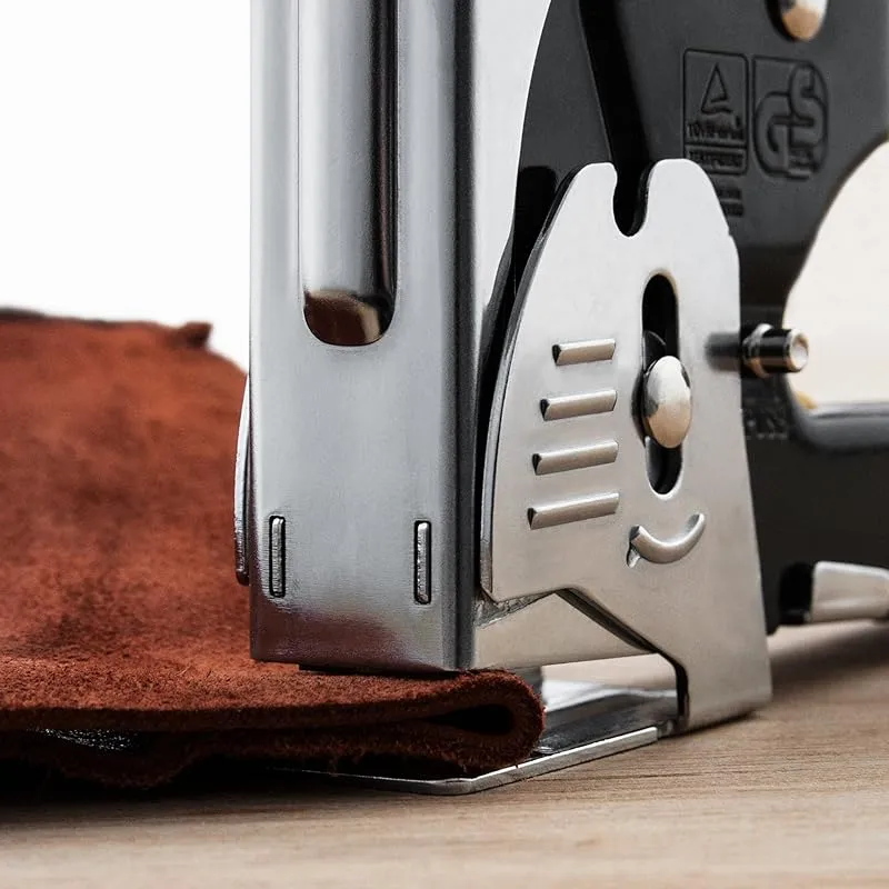 【商品概要】 サイズ:幅160×高さ100×厚さ31mm、 製品重量:約600g 材質:本体/スチール・TPR、グリップ/PVC 使用可能ステープル(針)サイズ:幅12mm×針足4~14mm、太さ0.7mmまで 付属品:替針(針足8mm)200本 針が詰まってしまった場合は、バネと残りの針を一旦抜いてからフィーダーを空けることで簡単に解消することができます。