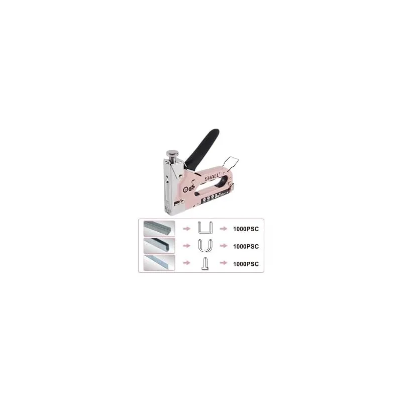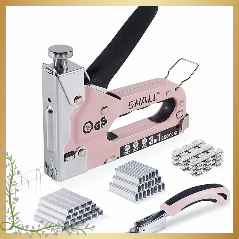 【迅速発送】SHALL ガンタッカー 3in1 ハンドタッカー ステープルガ 強力型 ン 人間工学 3000本替針 リムーバー付き 木工用 装飾 家具 内装 固定 ピンク