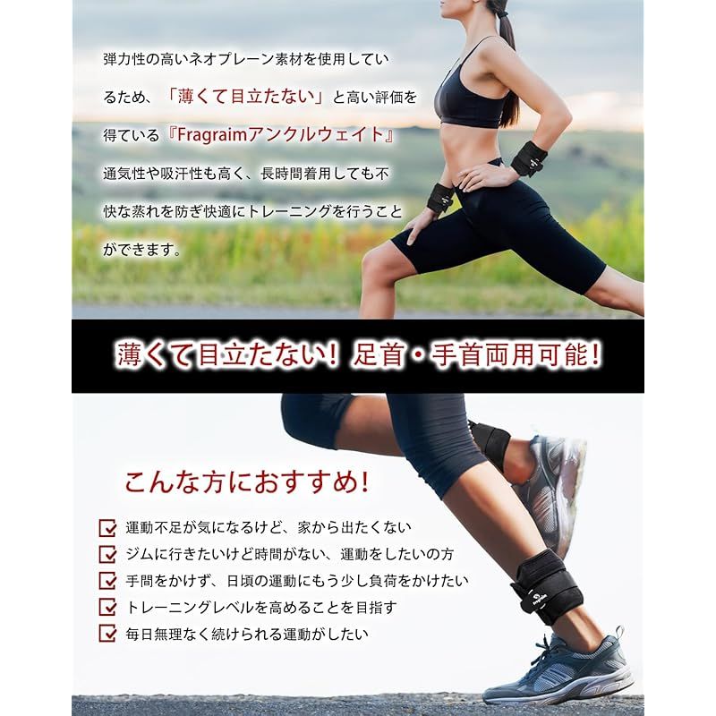 【商品詳細】 ブランド:Fragraim 商品種別:筋力トレーニング リスト・アンクルウェイト 商品名:Fragraim アンクルウェイト 5段階調節 2個組最小1.2kg-最大6kg 筋トレウェイト 重り 手首 足首 パワーアンクル 重さ調整可能 片足3kg ソフト 速乾 通気 ウォーキング ジョギング 体幹トレーニング エクササイズ 男女兼用 初心者 - 黒 製造元:Fragraim 商品番号:F-F-JP-adjust-weight-1-6KG-black-fba 商品内容:片足0.6-3kg 2個組 色:黒です 商品タイプ:コンパクト