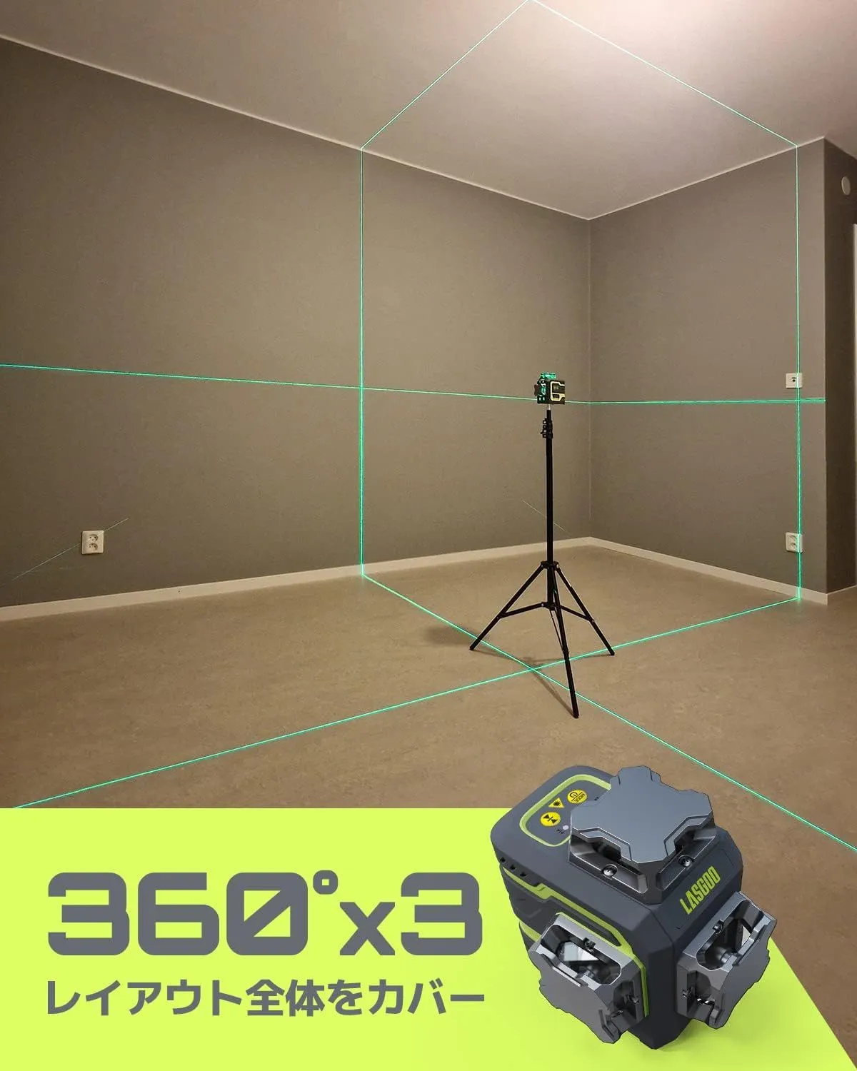 ●フルレイアウトカバレッジ 3x360 度:LasGooのレーザーレベル 3x360 度は、任意のレベル調整および位置合わせが必要なプロジェクトに最適です。水平線が1本、垂直線が2本あり、全方向に360度回転できるので、部屋全体をカバーし、レーザーの位置をあらゆる角度から確認することができます