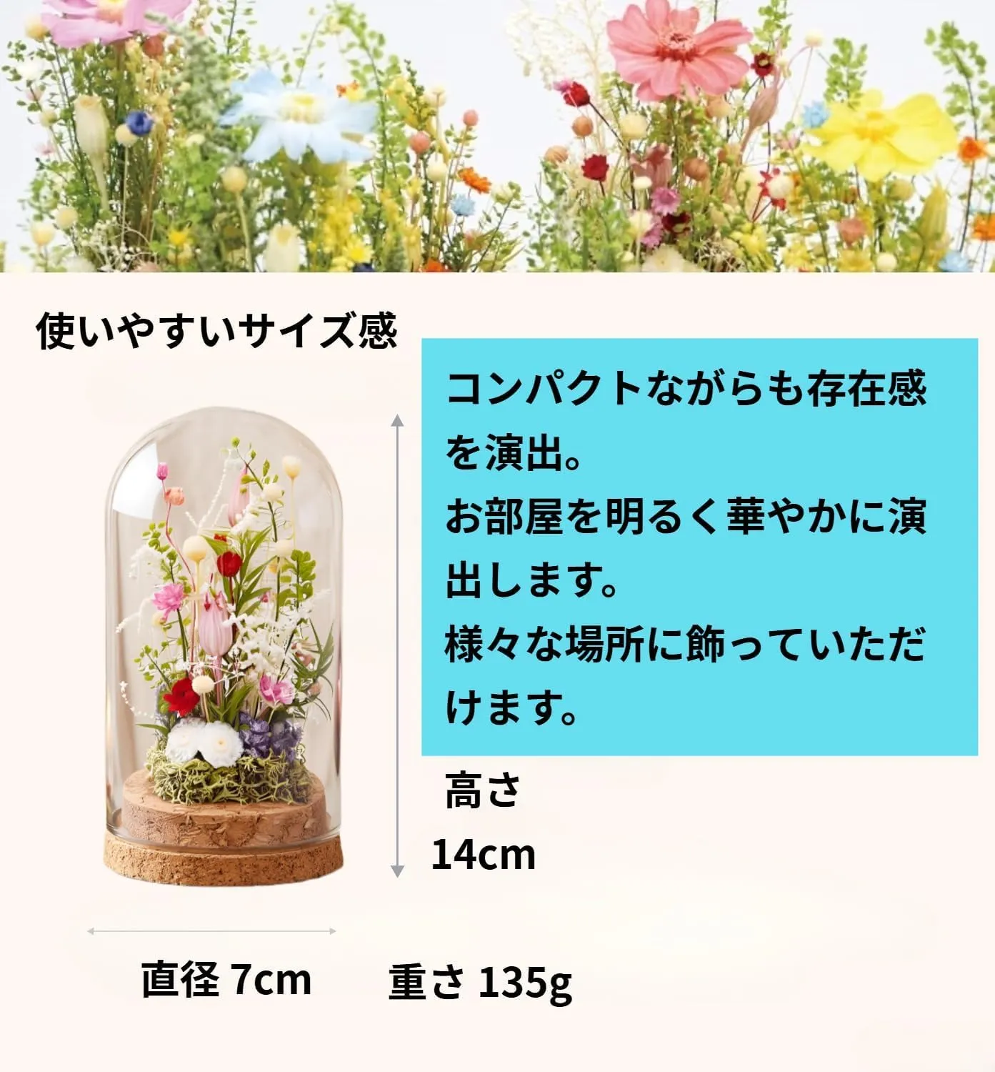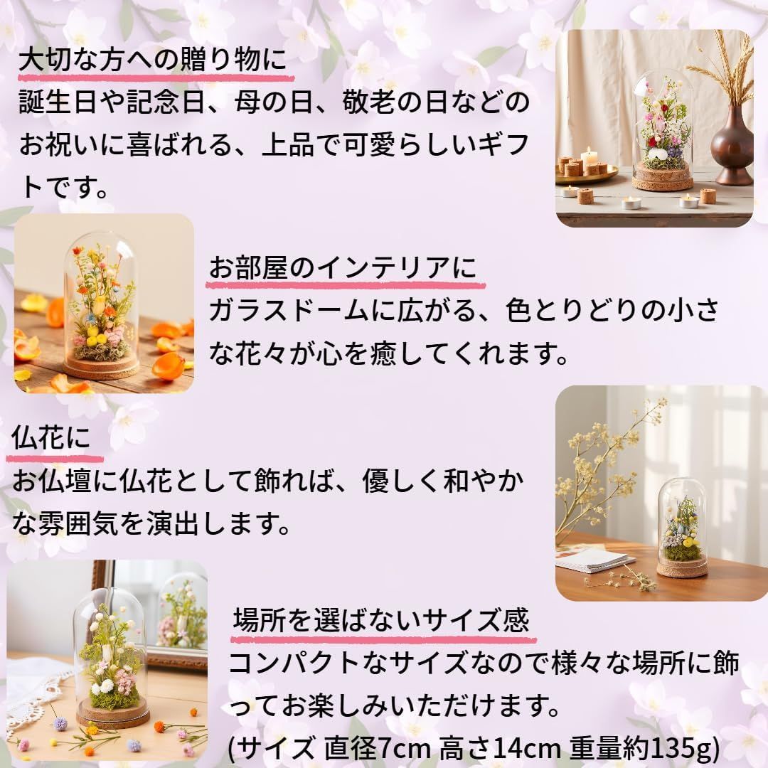 【埃から守るガラスドーム】 透明なガラスドームが大切なお花を埃や湿気から守り、美しい状態を保ちます。✅