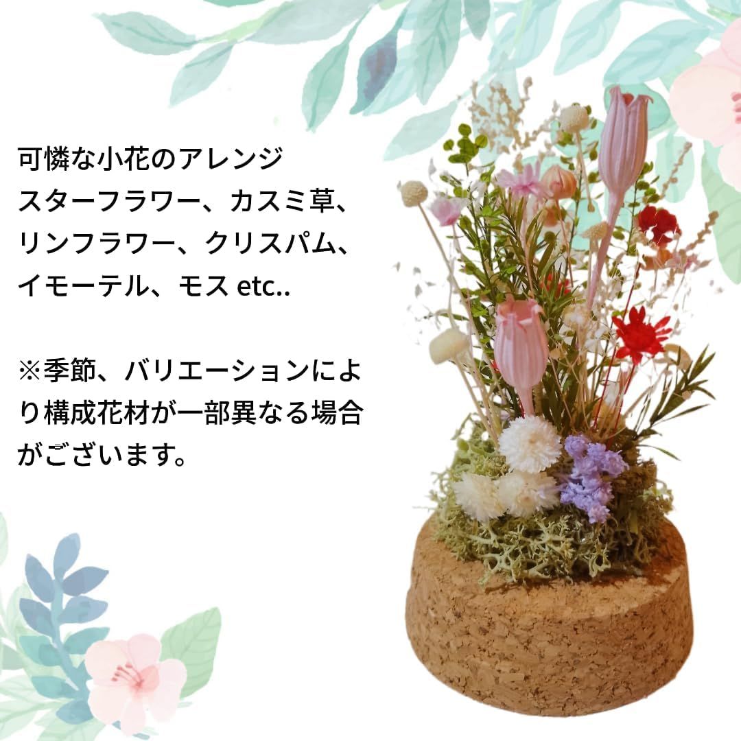 コルクガラスドーム 小花アレンジ プリザーブドフラワー ドライフラワー (ピンク) [ピンク]