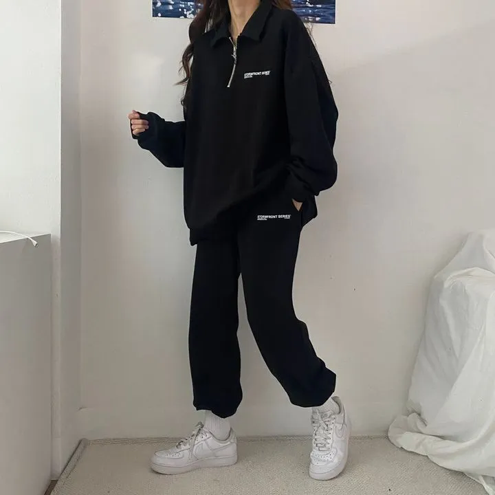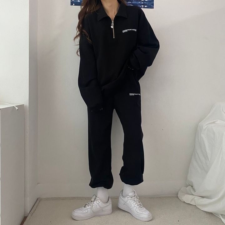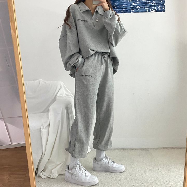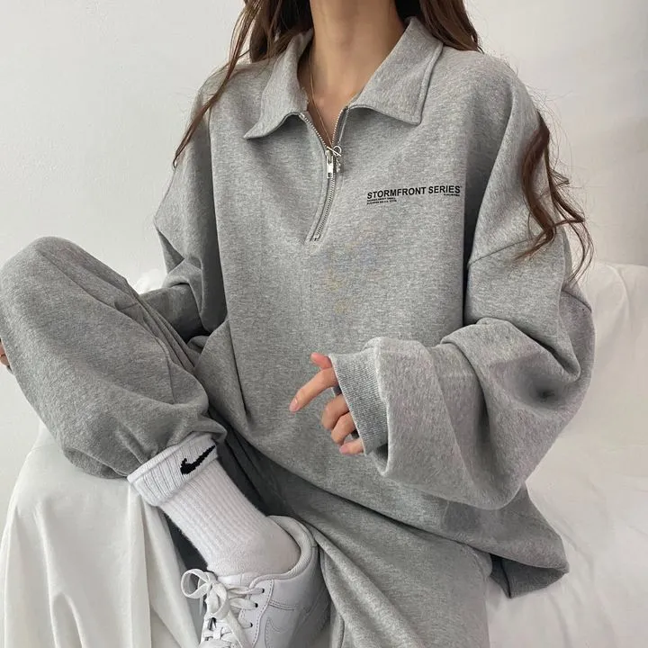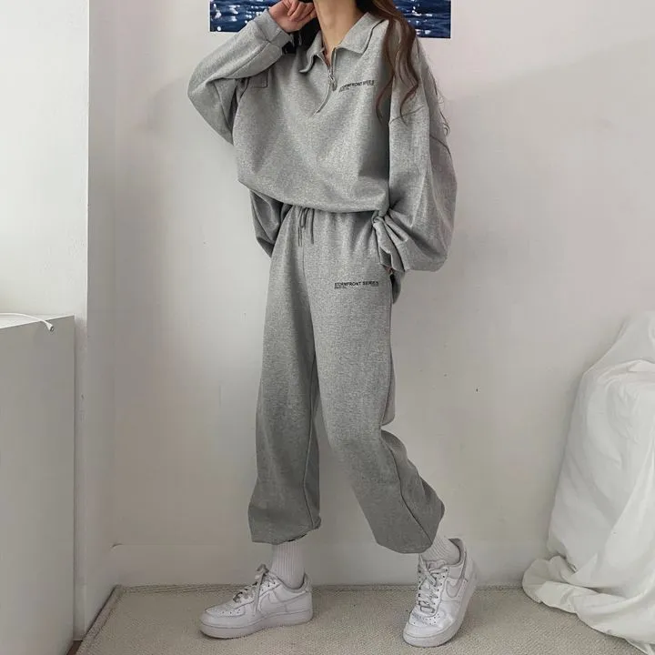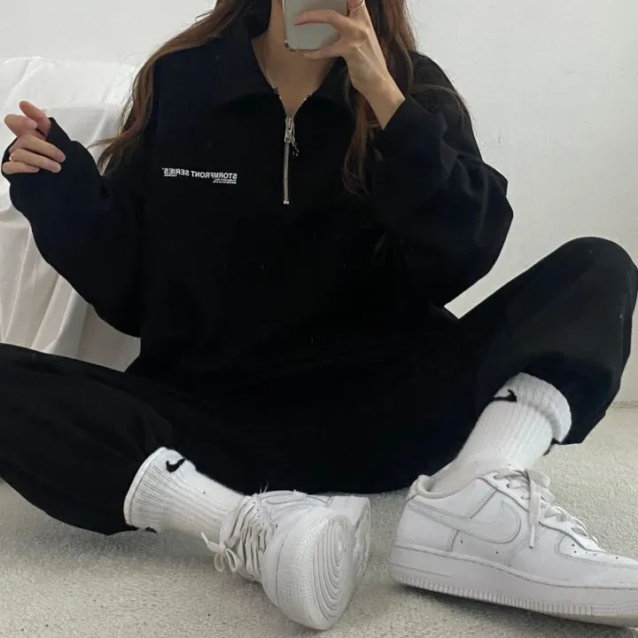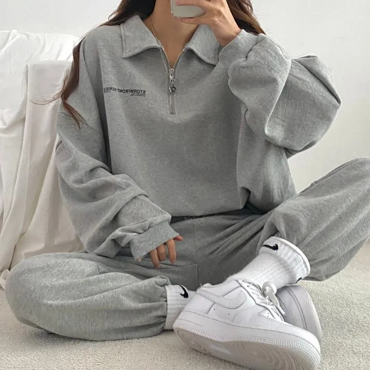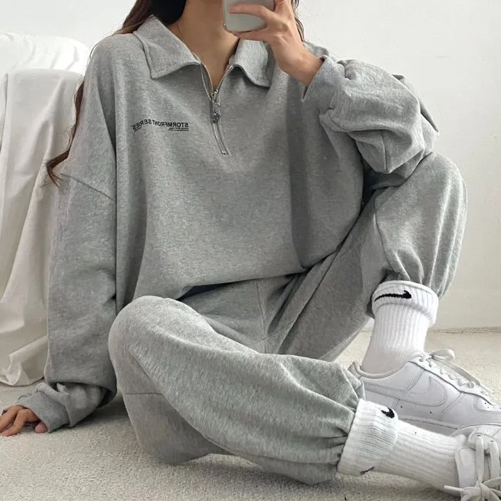 【特徴】 ・長袖プルオーバータイプの上下セット ・無地デザインでシンプルなルームウェア ・スウェット素材で着心地が良い ・ポロネックデザイン ・カジュアルな着こなしに最適