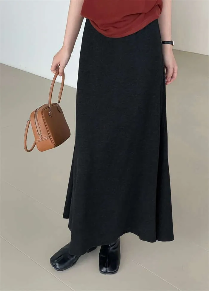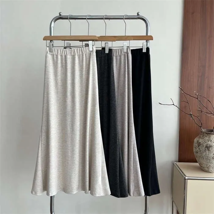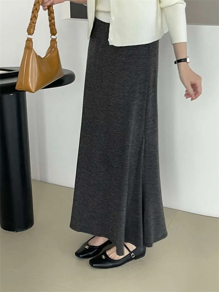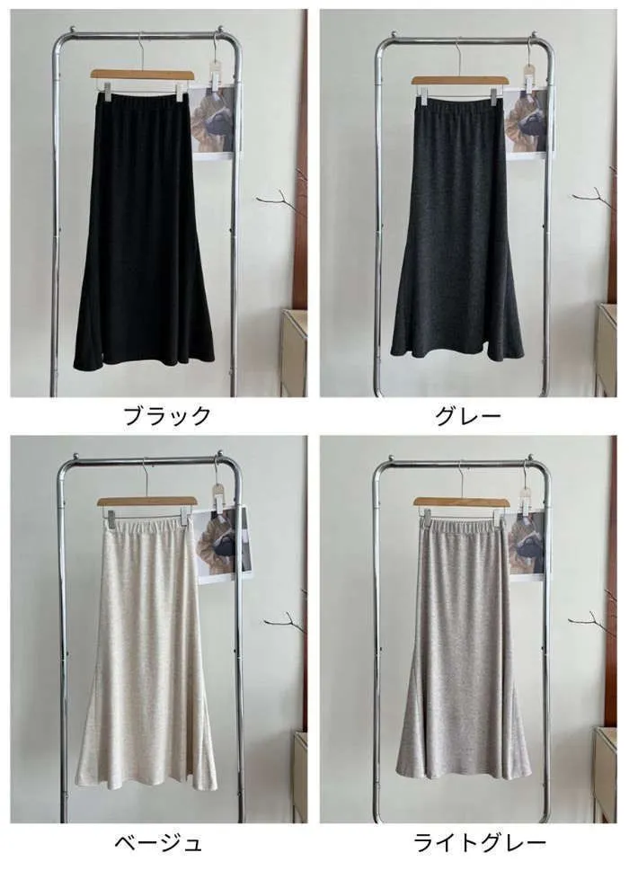 スカート レディース ニット マーメイドスカート フレアスカート ロング丈 ウエストゴム 秋 冬 暖かい 防寒 あったか おしゃれ スタイルアップ 体型カバー 着回し シンプル