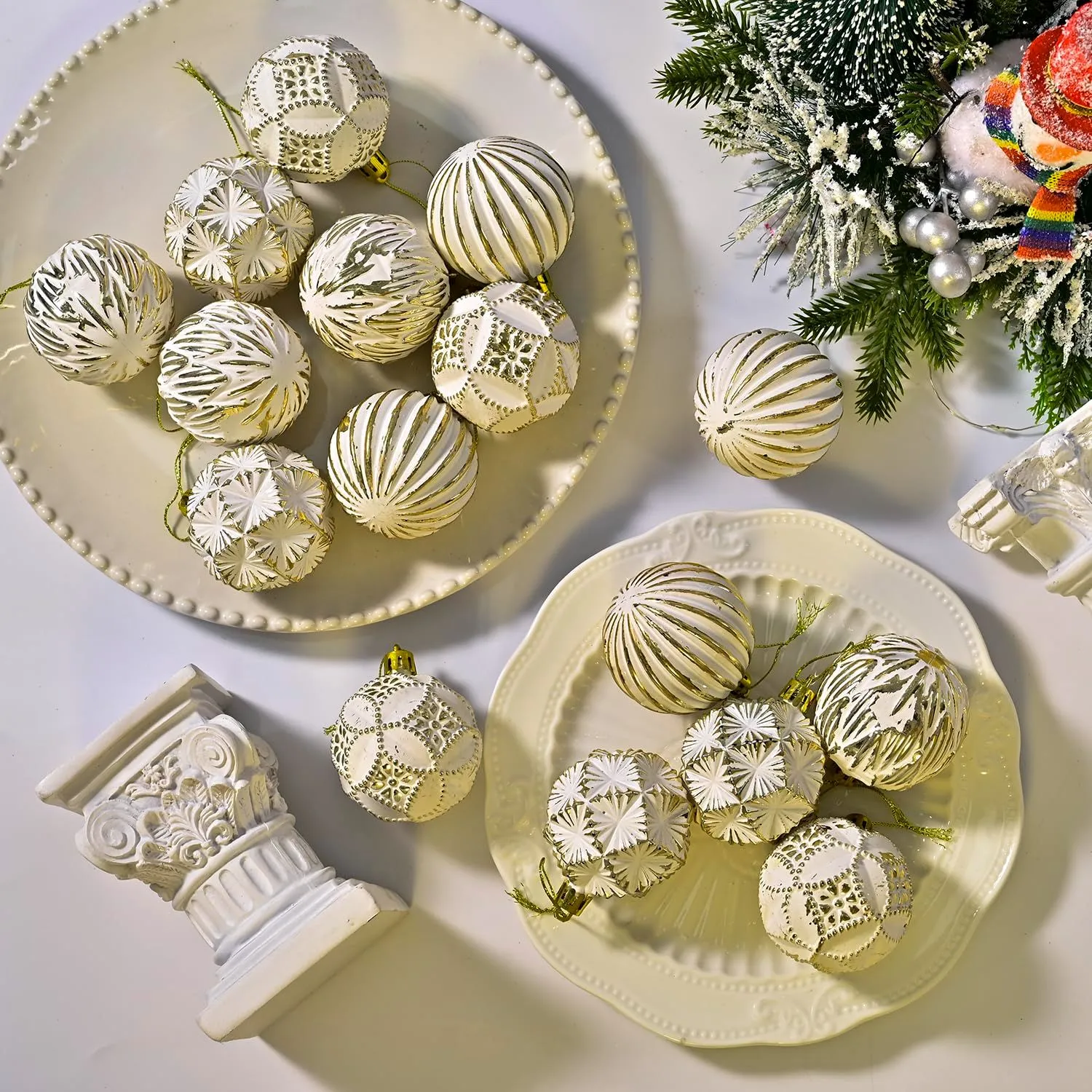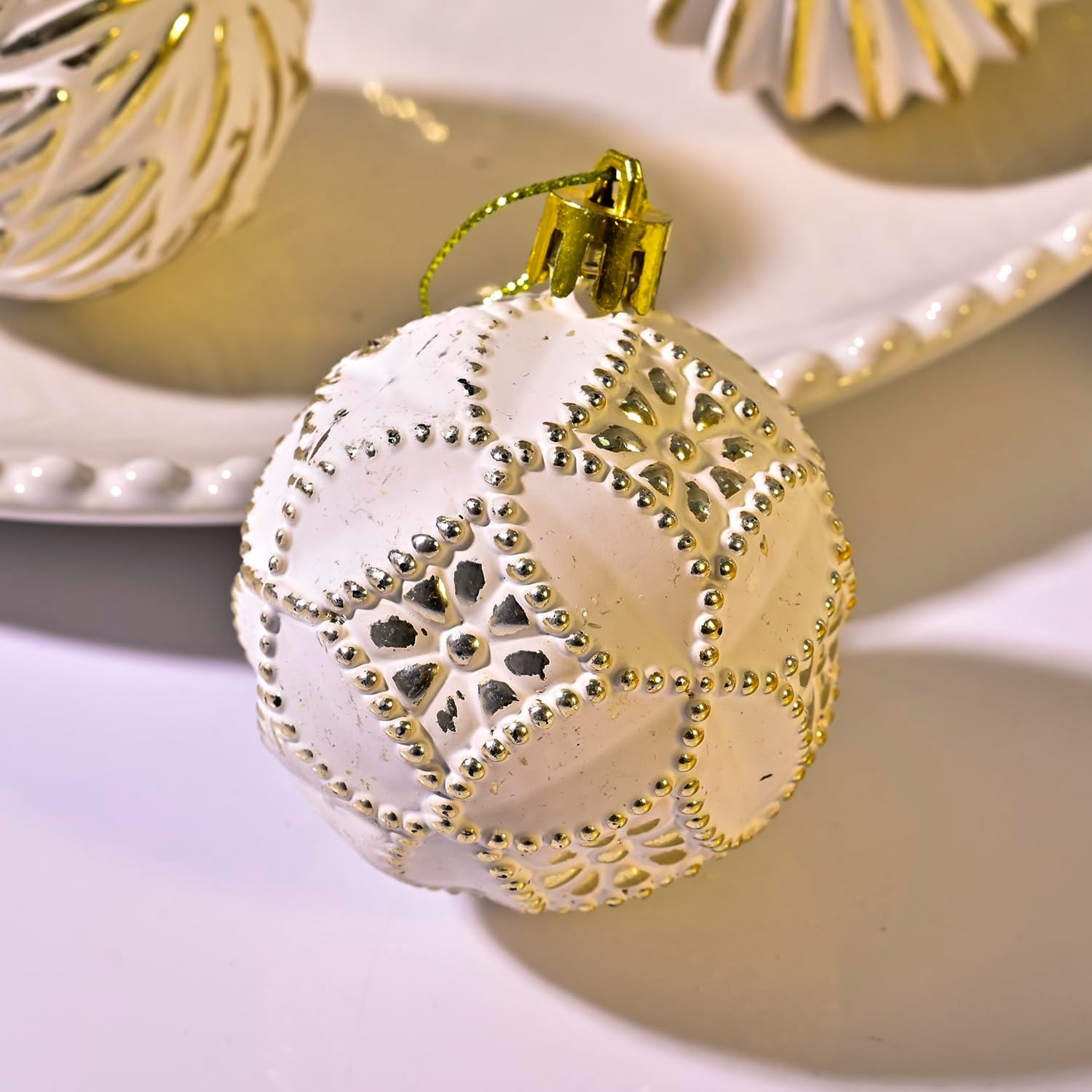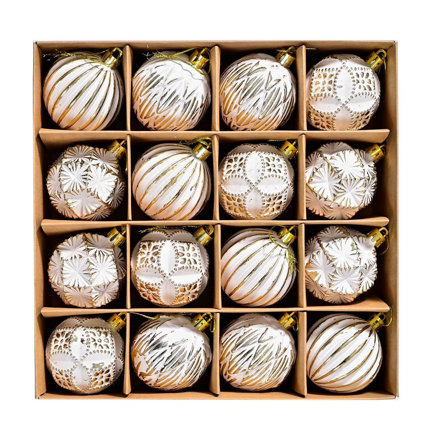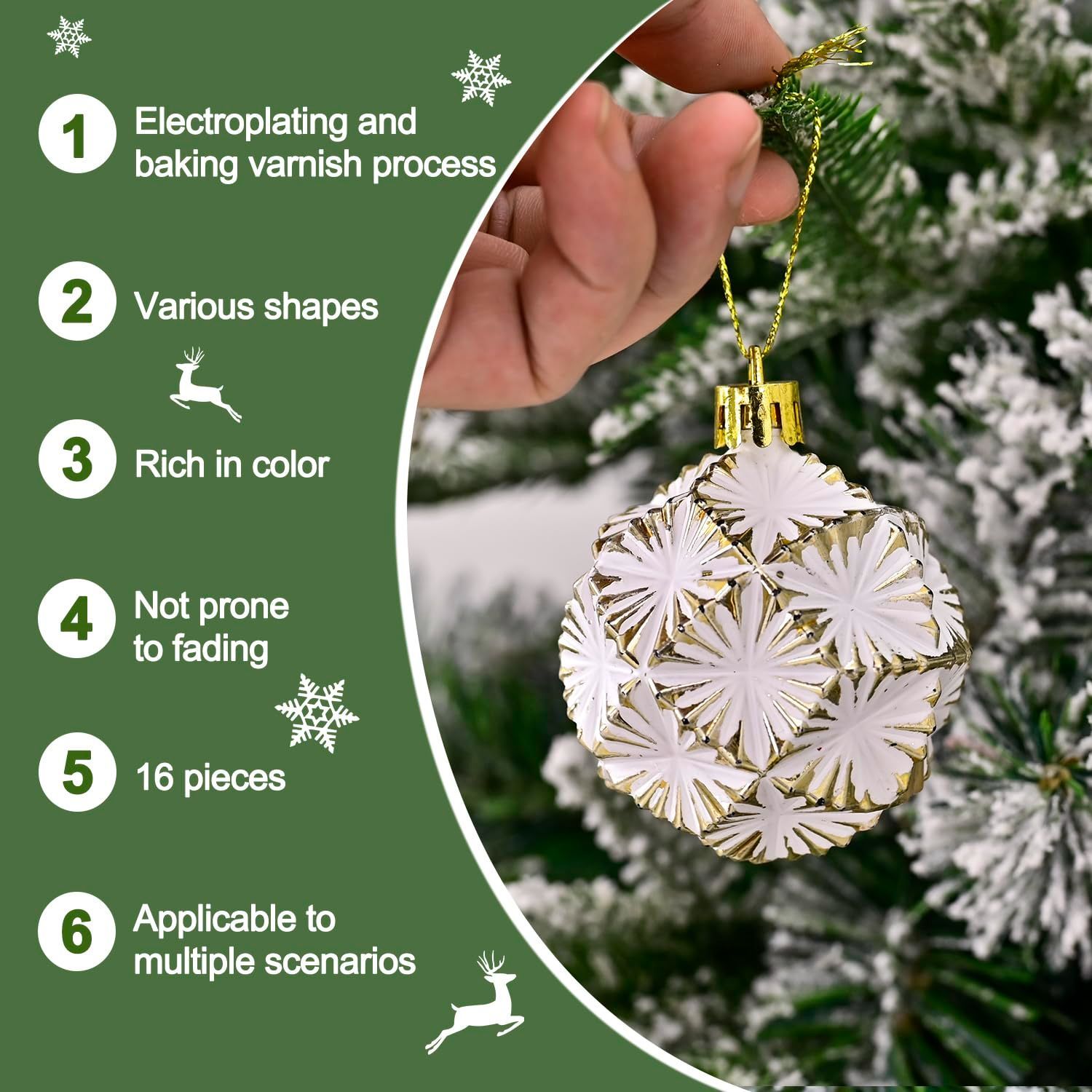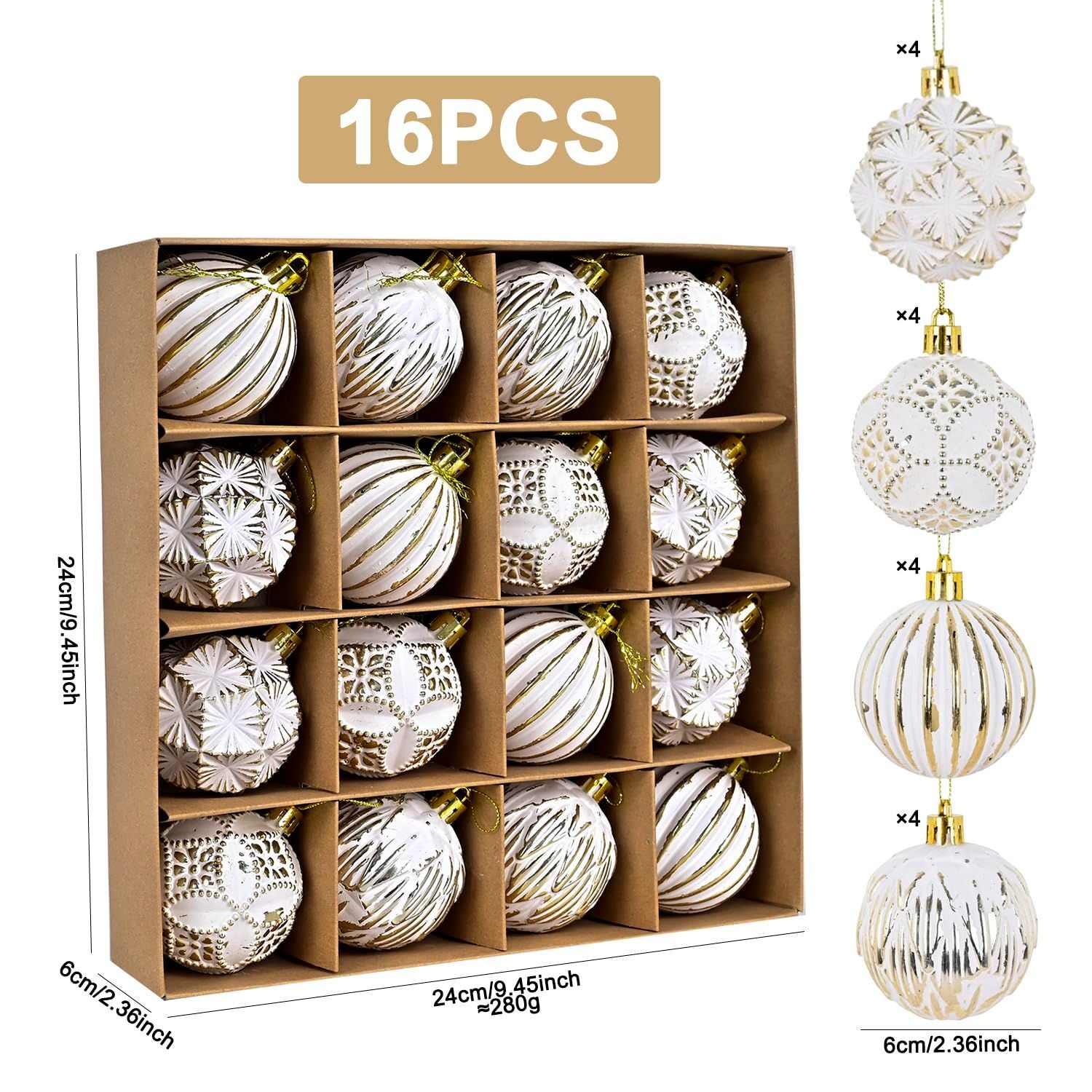 【製品仕様】セット内容:クリスマスオーナメント16pcs入り、サイズ:6cm、カラー:ゴールドとホワイト、材質:プラスチック。 ★