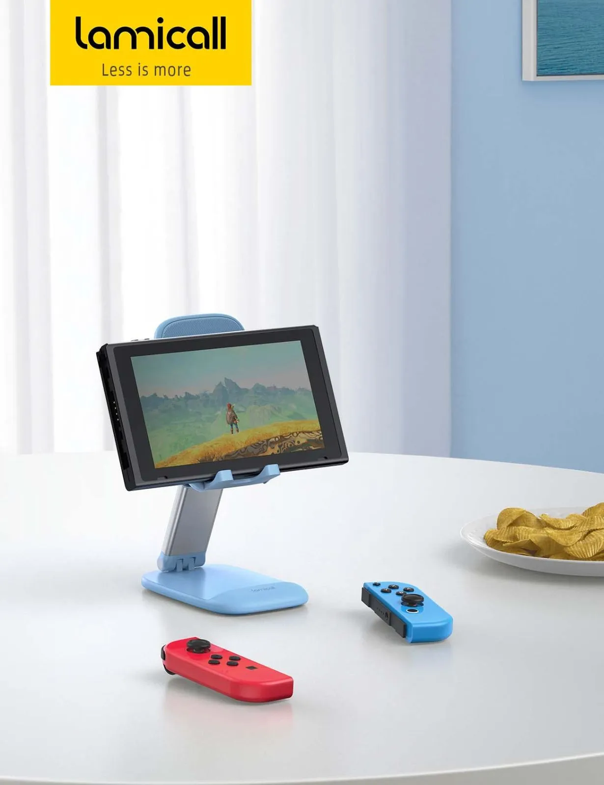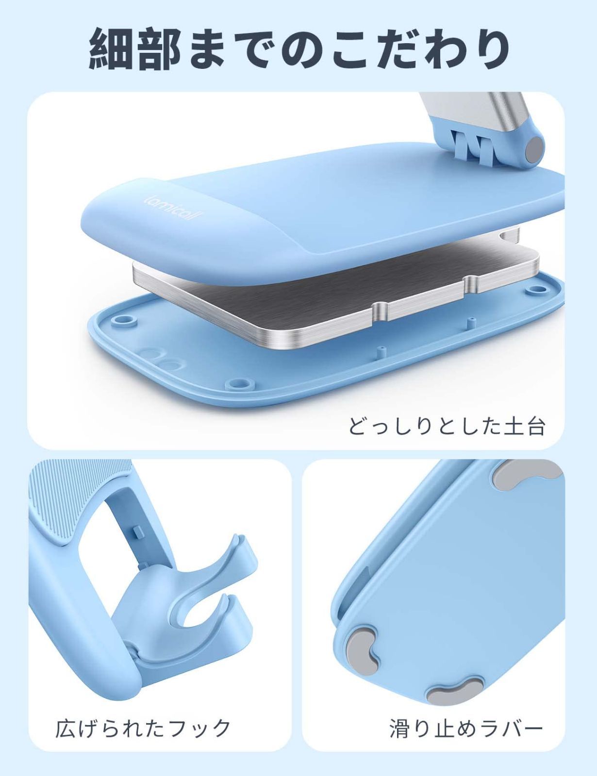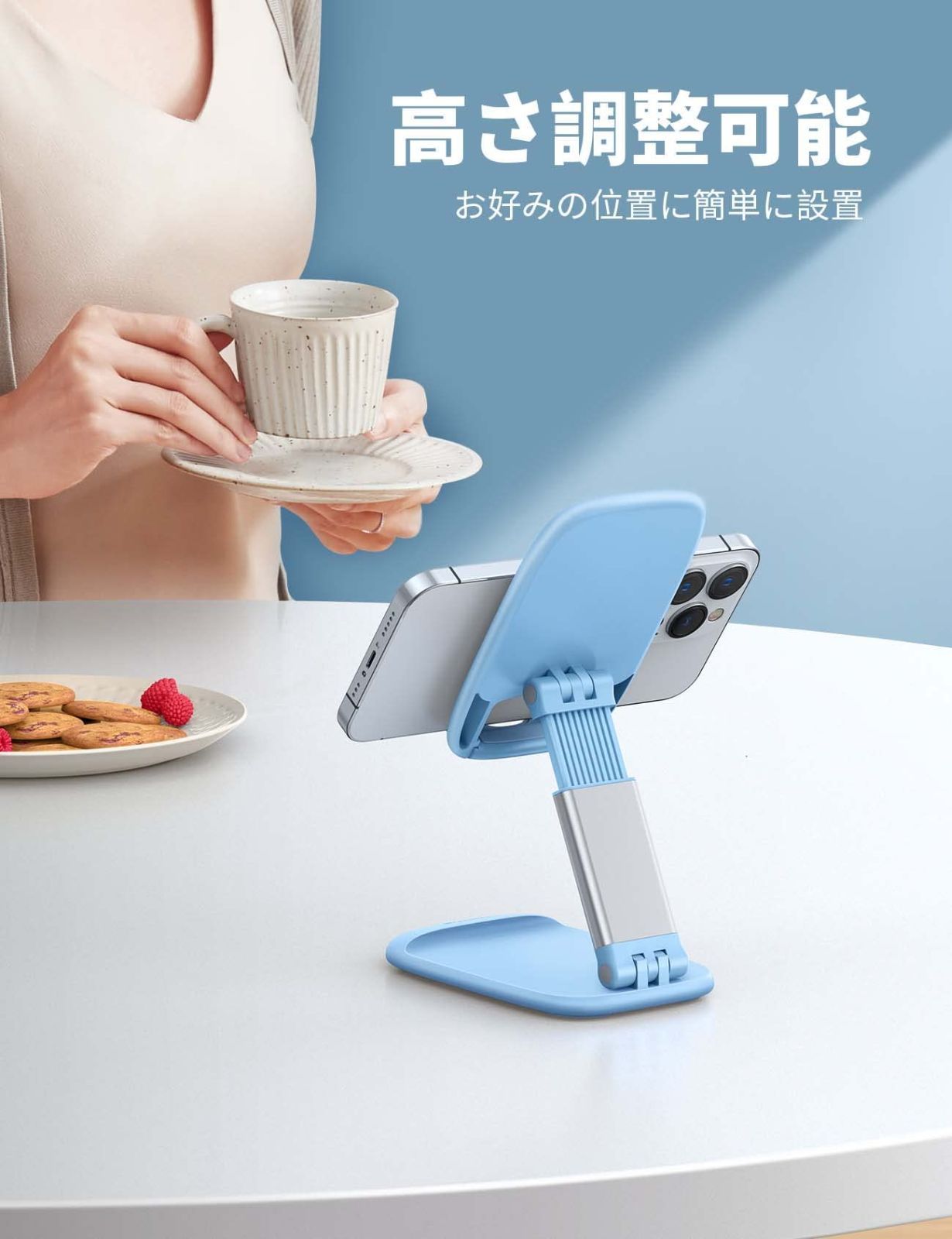 Lamicall 折り畳み 高さ調整 スマホスタンド 伸縮 : スマートフォン 角度 折りたたみ 携帯 アイホン 立て 置き 台 卓上 机 つくえ テーブル デスク 縦 横 滑り止め コンパクト アイフォン スマフォ アンドロイド iPhone 17 Air 16e 16 15 14 plus pro promax 13 mini 12 se Huawei Xperia android に対応 青