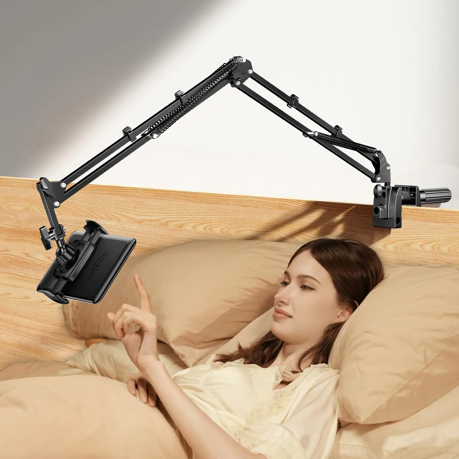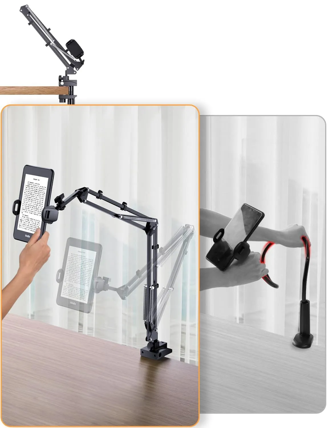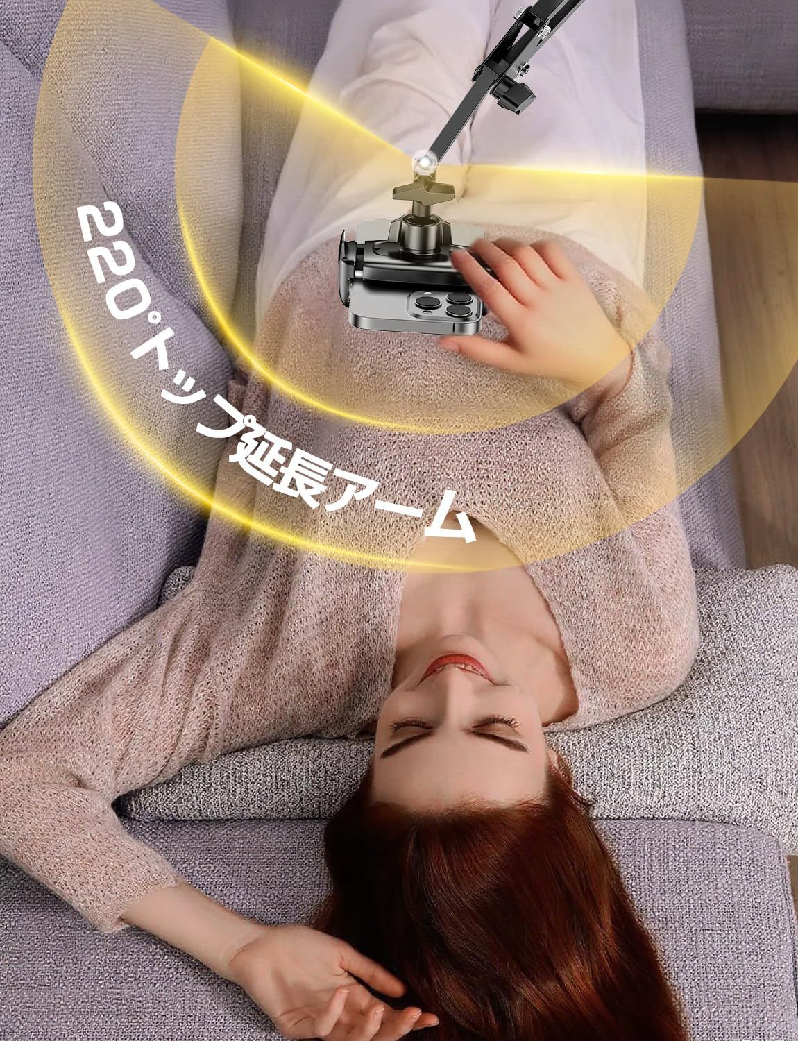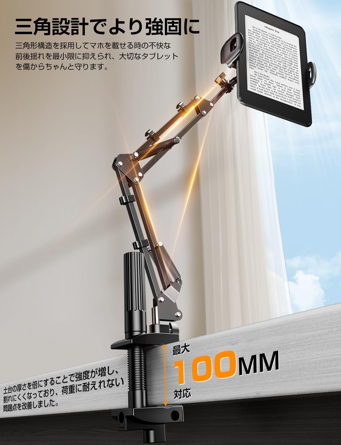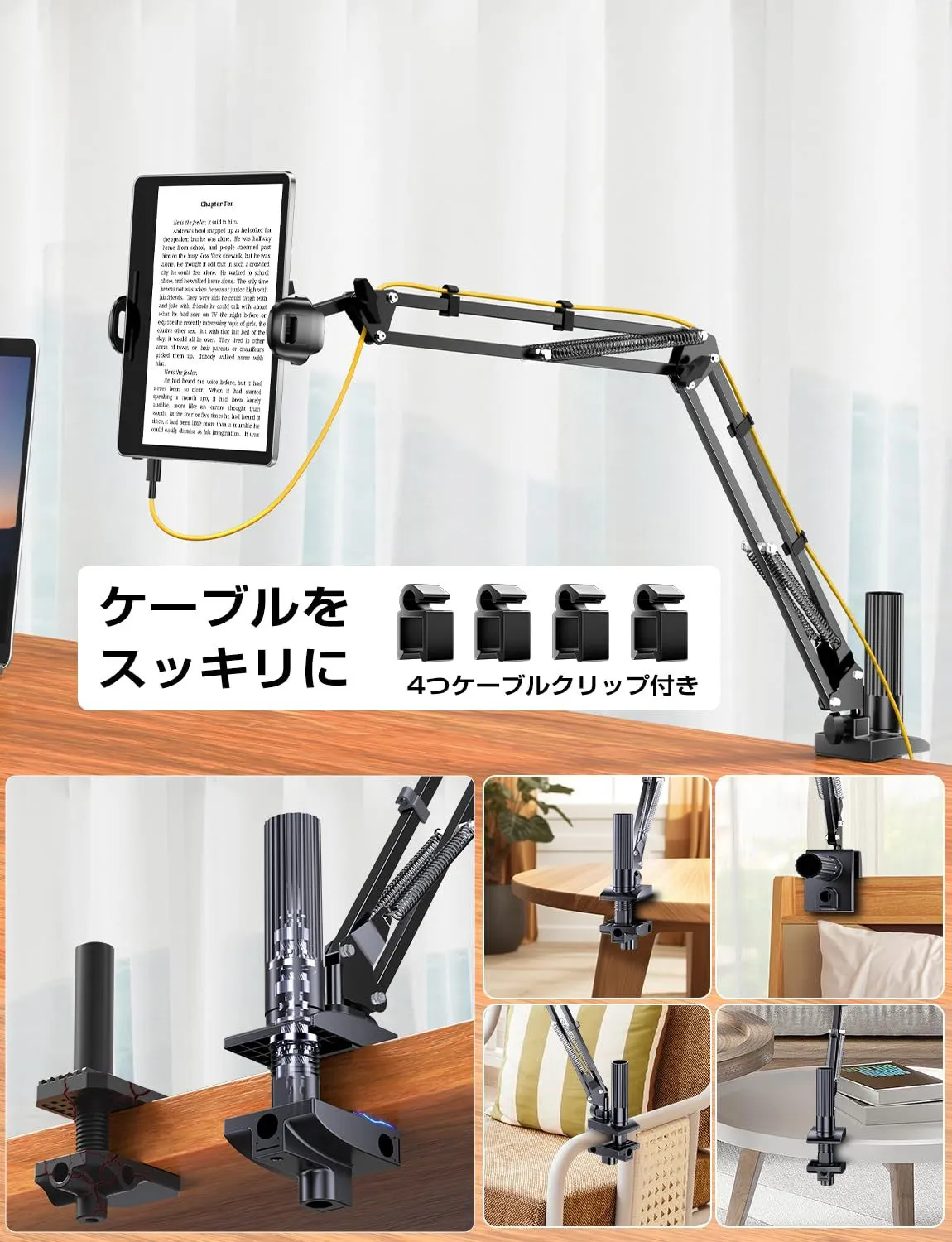 新商品 スマホスタンド【5穴土台五つの可動軸】携帯スタンド 寝ながら スマホ アーム 寝ながら ベット スマホホルダー 携帯 すまほ けいたい フレキシブル ケーブルクリップ付き 土台強化 安定性 360° 回転 5穴土台 素スチール製 4-9インチ 全機