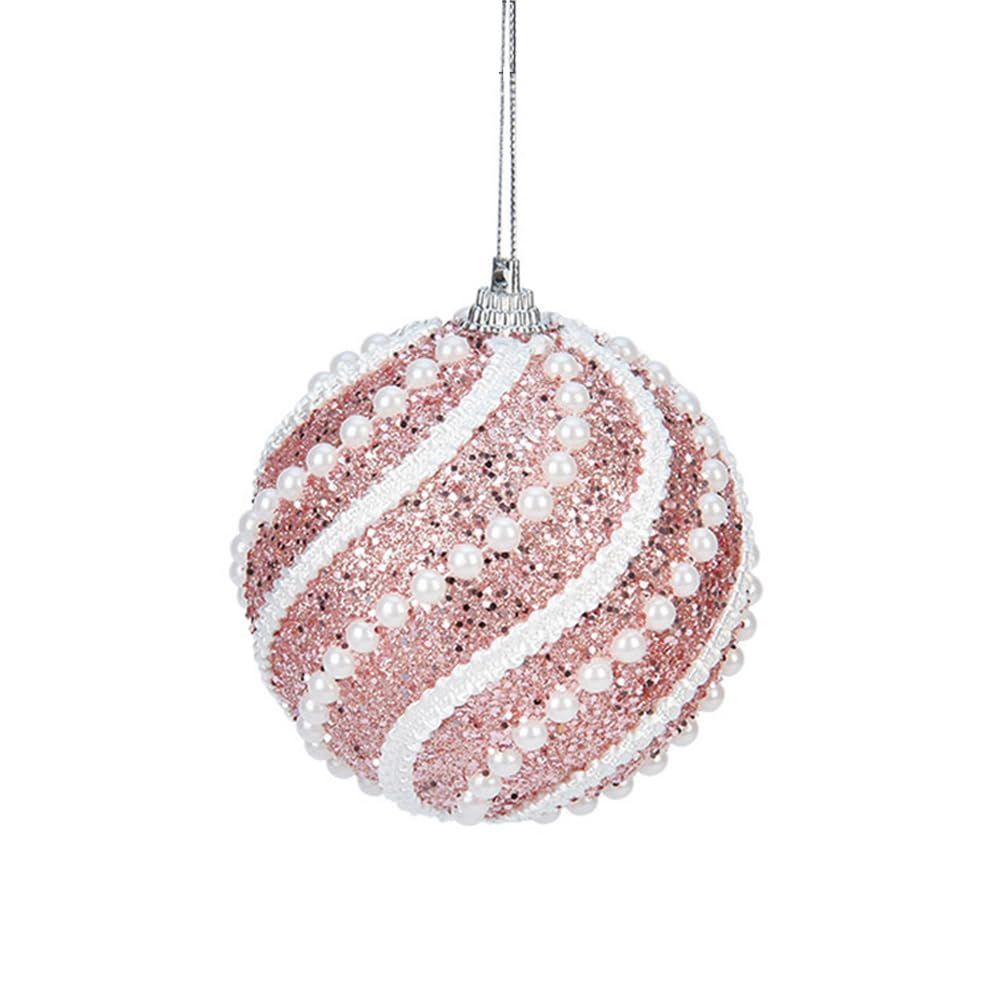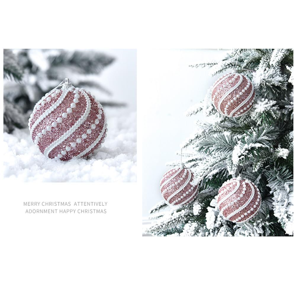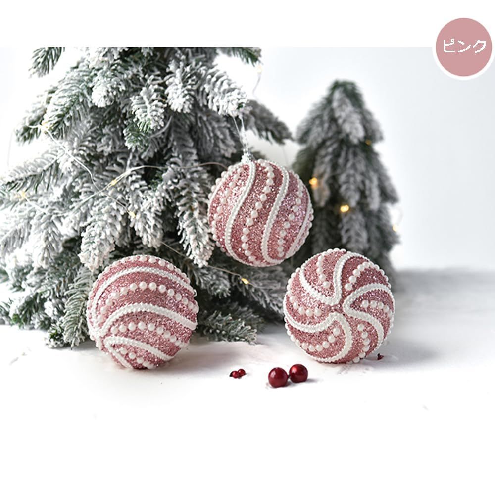 クリスマスツリー飾り 綺麗 クリスマスボール6個セットで カラーボール フォームねんちゃくきゅう 飾りストラップ オーナメント キラキラした ペンダント 直径8cmつり玉 北欧 インテリア ツリー 飾り 100%手作り (ピンク6個)