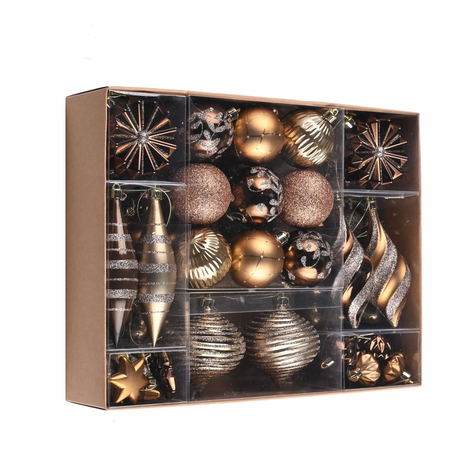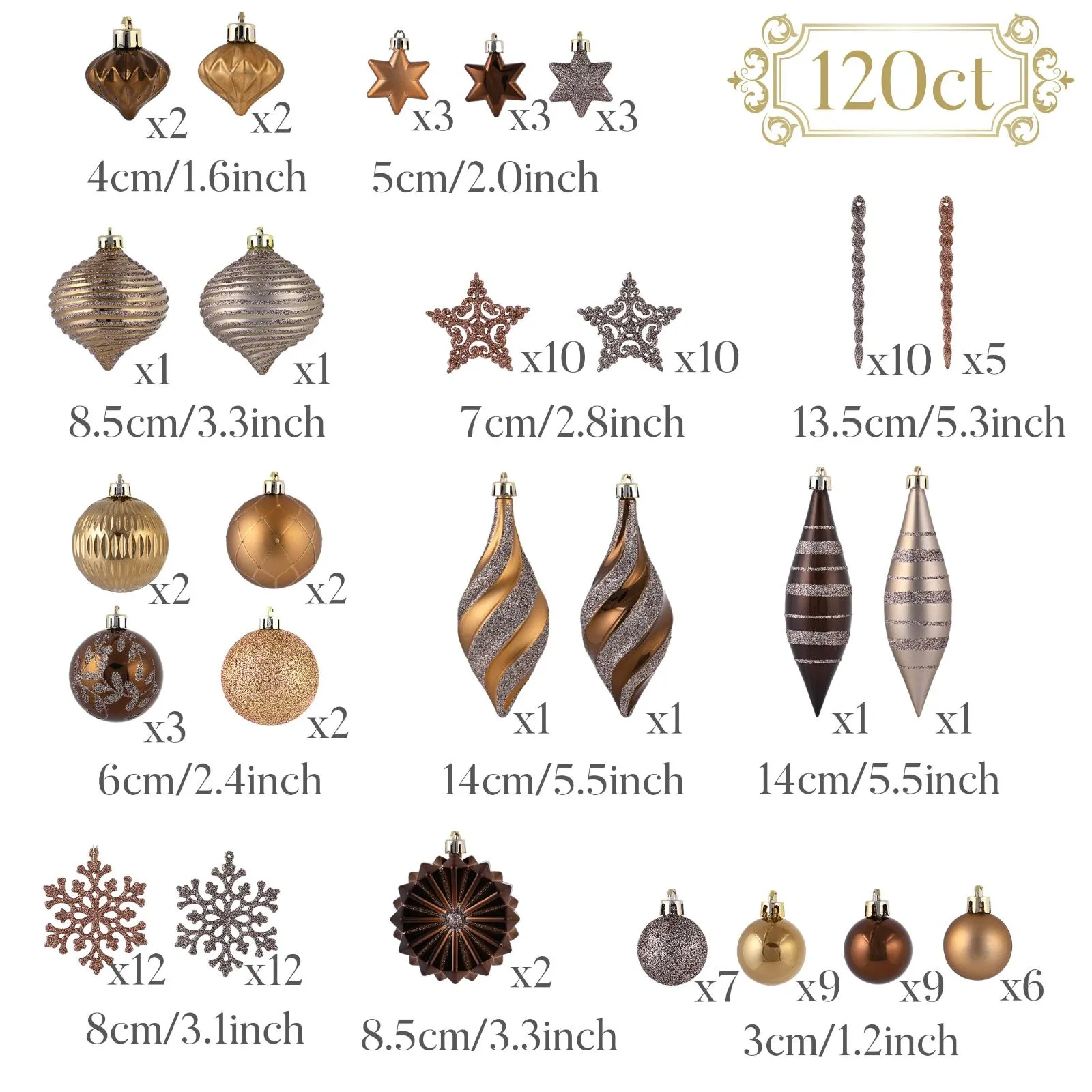 【パッケージとサイズ】クリスマスオーナメントセットには、金銅色のクリスマスボール120個が含まれています。各ボールはシームレス接続を採用し、洗練された外観を作り出しています。ボックスには高品質のエコボール箱を採用し、贅沢感を加えます。