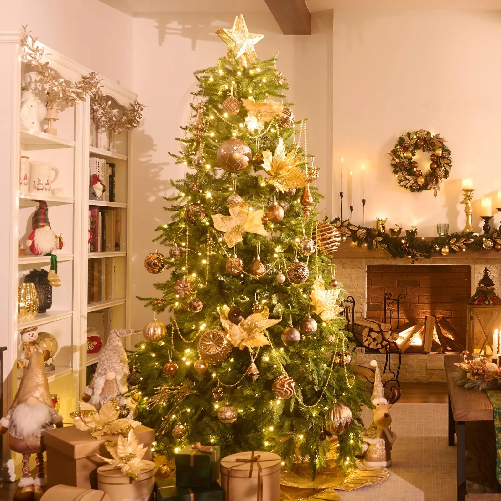 Valery Madelyn 北欧風 クリスマス ボール オーナメント ゴールド・コッパー 豪華 120個 セット ボールクリスマス ツリー 飾り 飾り付け おしゃれ ゴージャス レッド ゴールド 金銅色