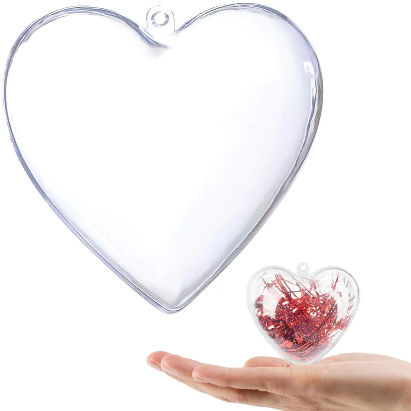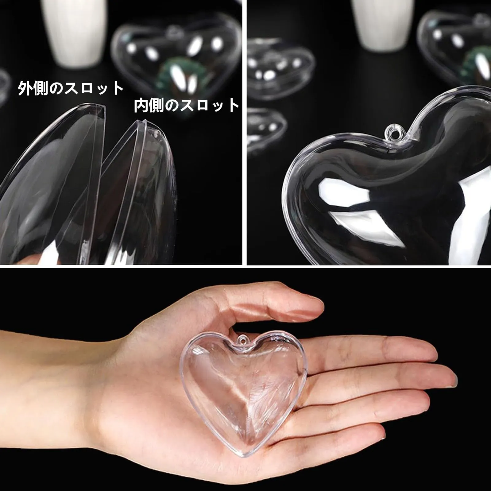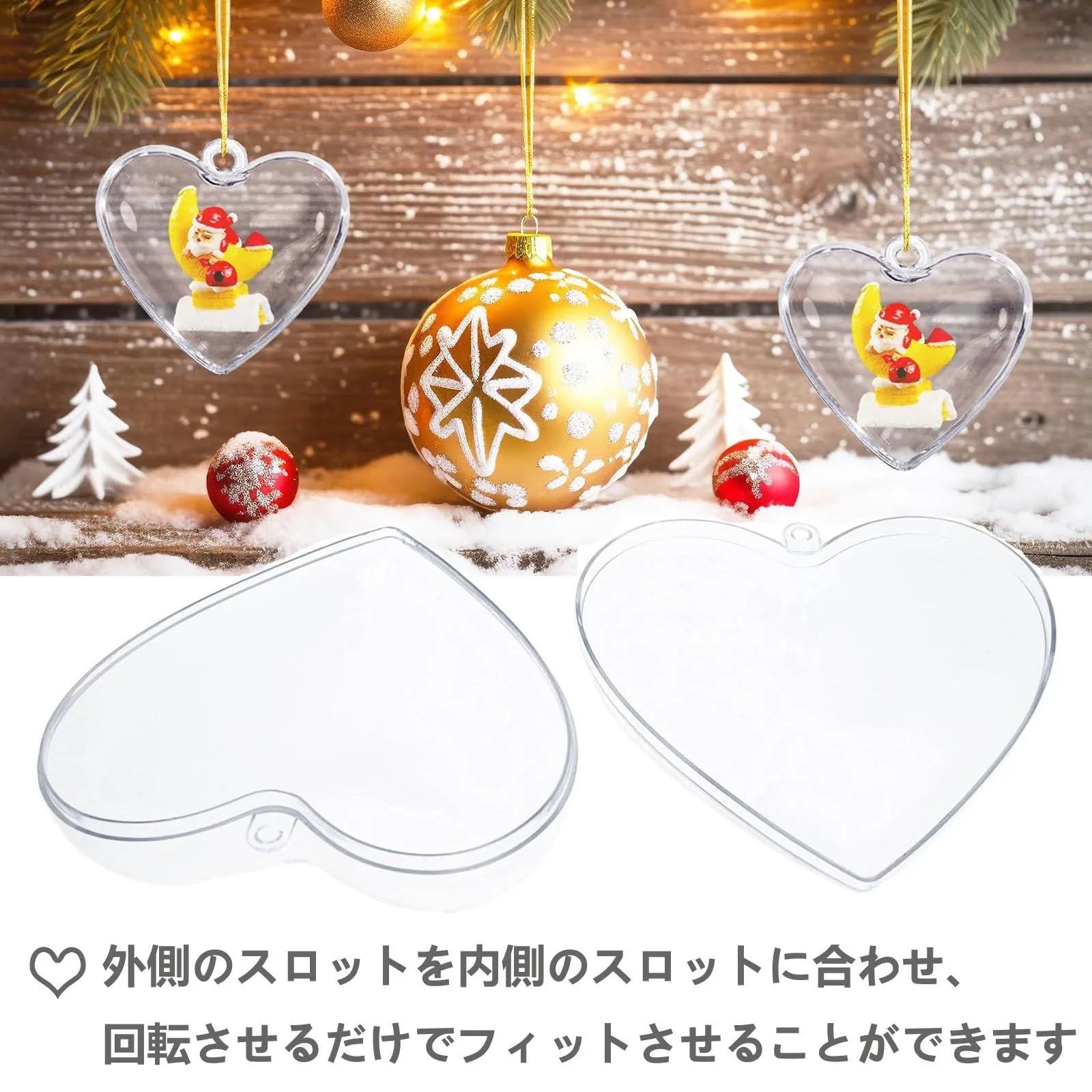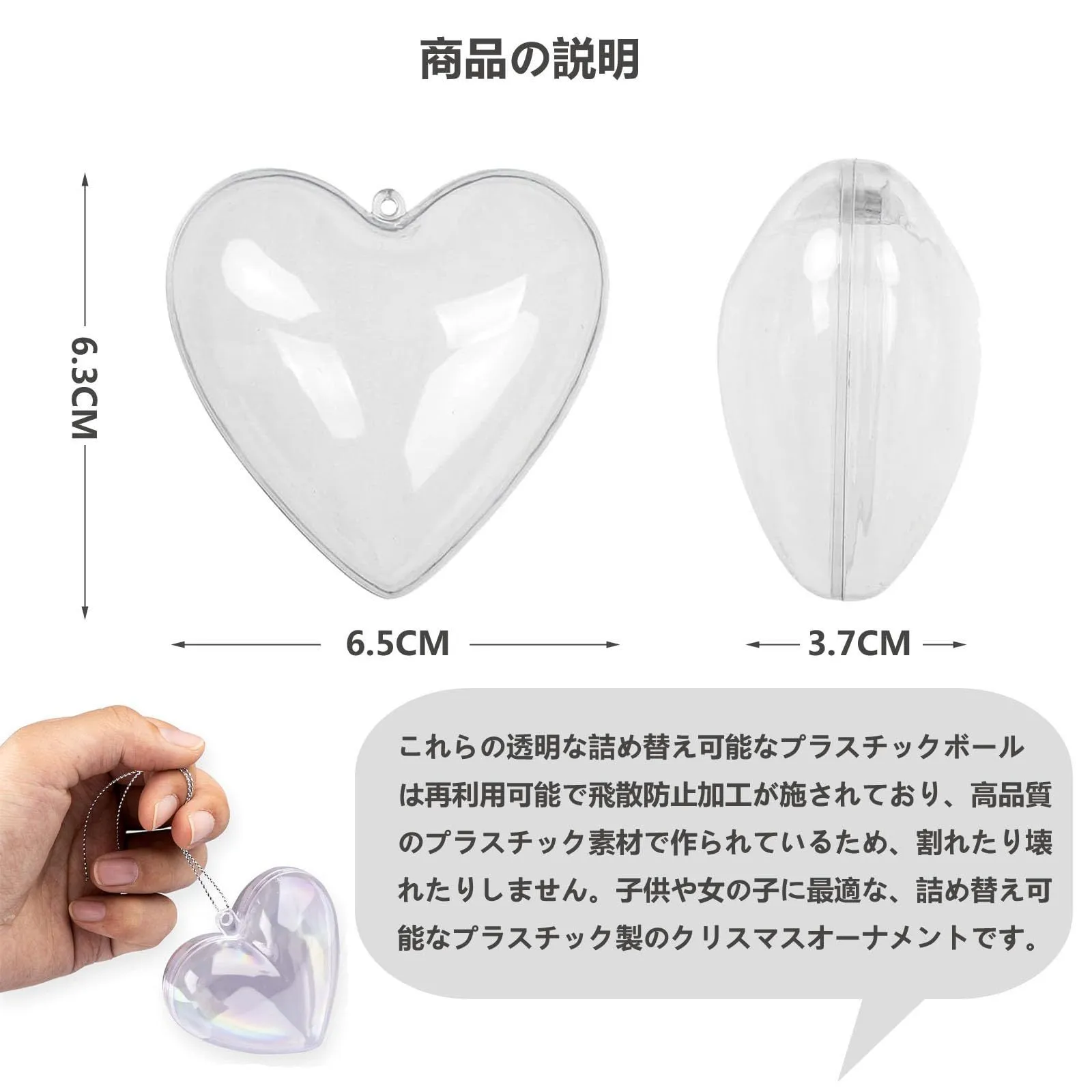 クリスマスボール プラスチックボール 10個セット 5cm 6cm 8cm プラスチック 球 オーナメント ボール 飾り 透明 中空 球体 装飾 収納 DIY クリスマスクリアつまらないもの透明なボールプラスチック製の充填可能な球体の飾りクリスマスツリー/家の装飾/結婚式/誕生日/パーティー/ギフトボックスなど (ハート型透明球 (6CM 5個))