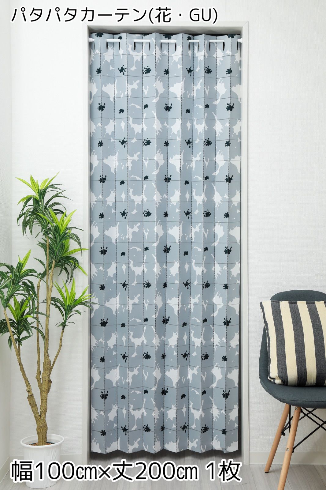 レースプリント間仕切りカーテン(花・GU)幅100㎝×丈200㎝ 1枚入
