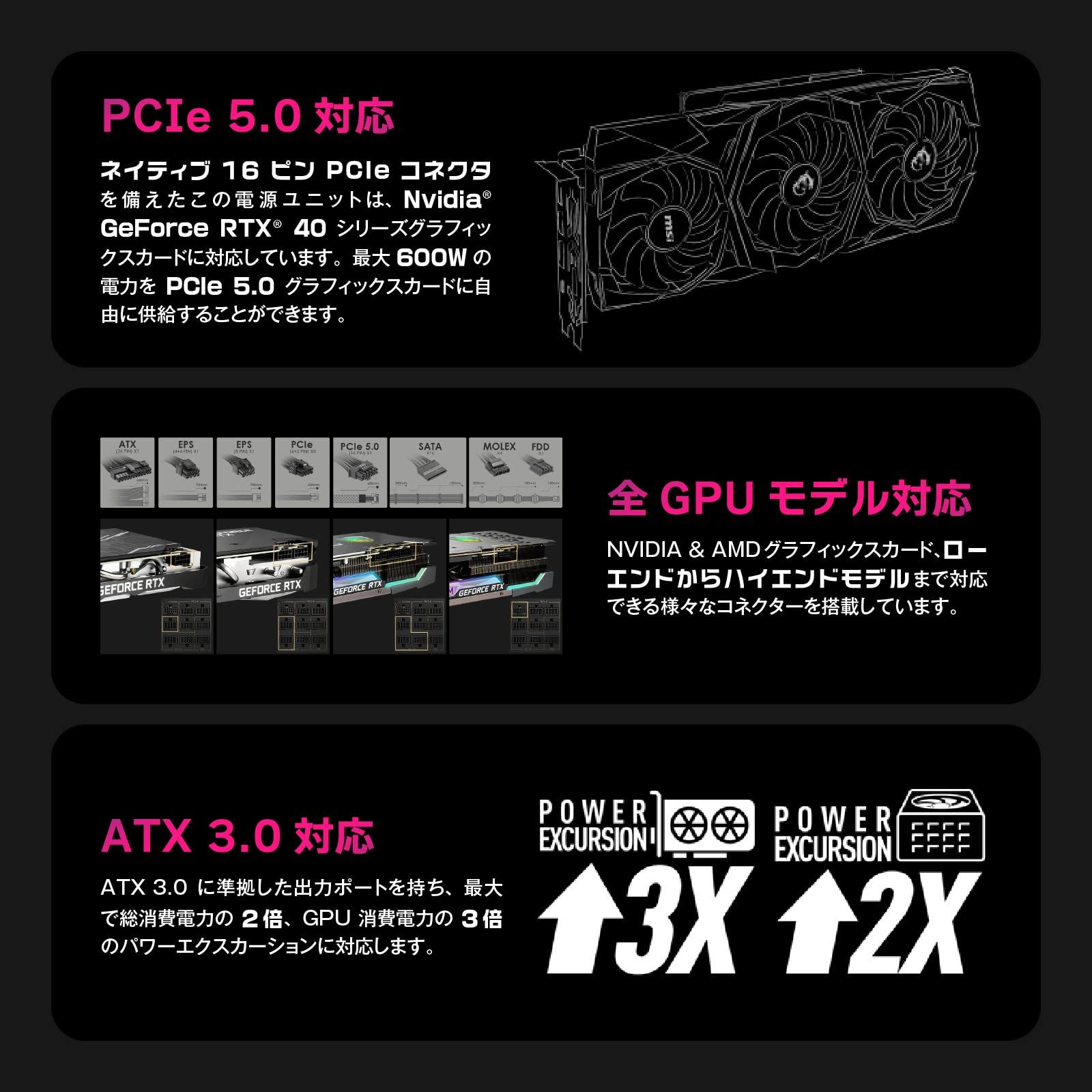 MSI MPG A1000G PCIE5 1000W ATX3.0/PCIe 5.0ネイティブ対応80PLUS GOLD PC電源ユニット PS1232 [【1000W】GOLD電源 10年保証]