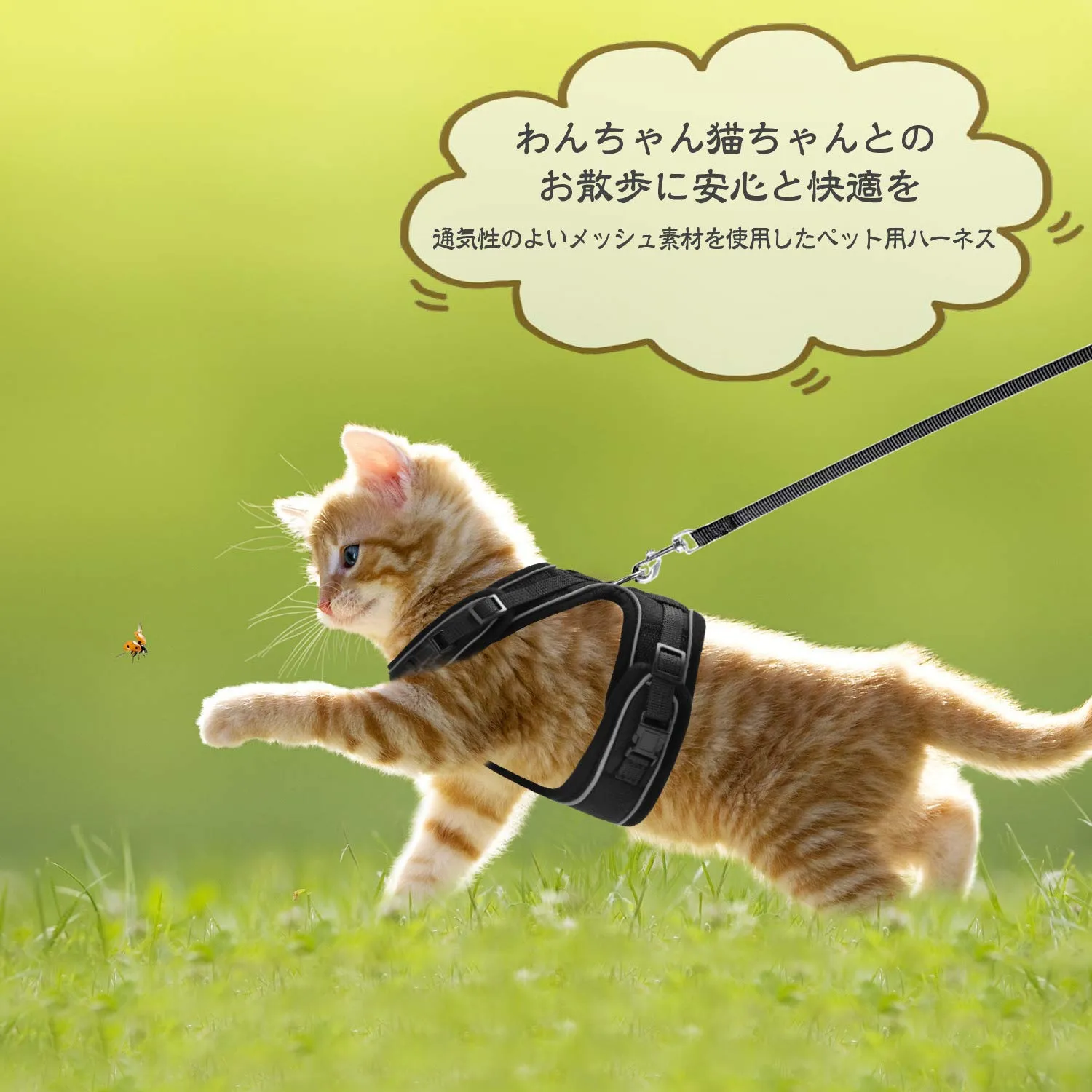 【小さい体にもしっかりとフィット】猫ちゃんとワンちゃんの体型はいろいろありますが、 この猫ハーネス/小型犬ハーネスが小型の猫ちゃんとワンちゃん専用です。首回りと胴回りの長さは調節できるうえに、サイズがマジックテープでさらに調節できます。猫ちゃんの体型に合わせてフィットする、安全なソフト型ハーネスです。