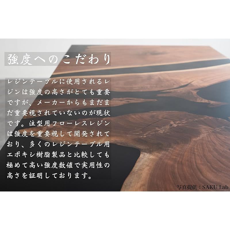 ◆フローレスレジン-FLAWLESS RESIN‐ リバーテーブルなどをDIY製作するための、レジン家具作りに最適なプロユース材料の2液性高性能エポキシ樹脂です。 キャスティング、アクセサリー、標本、スタビライズドウッドなど幅広くお使いいただけます。 ・混合比率(重量比):主剤