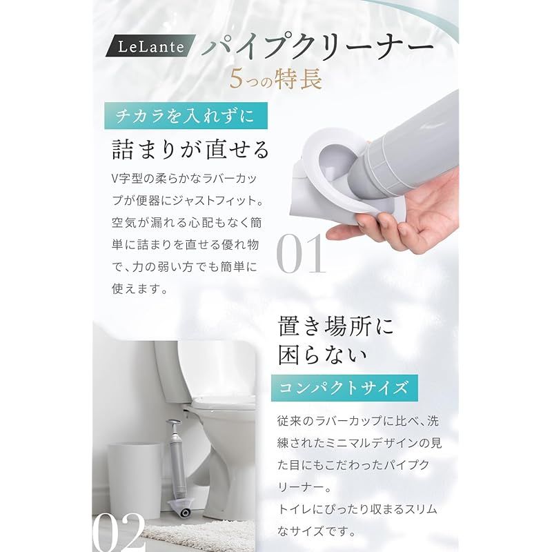 【anan掲載モデル】 LeLante ラバーカップ すっぽん トイレ つまり パイプクリーナー 瞬時に解決 真空式 詰まり 1
