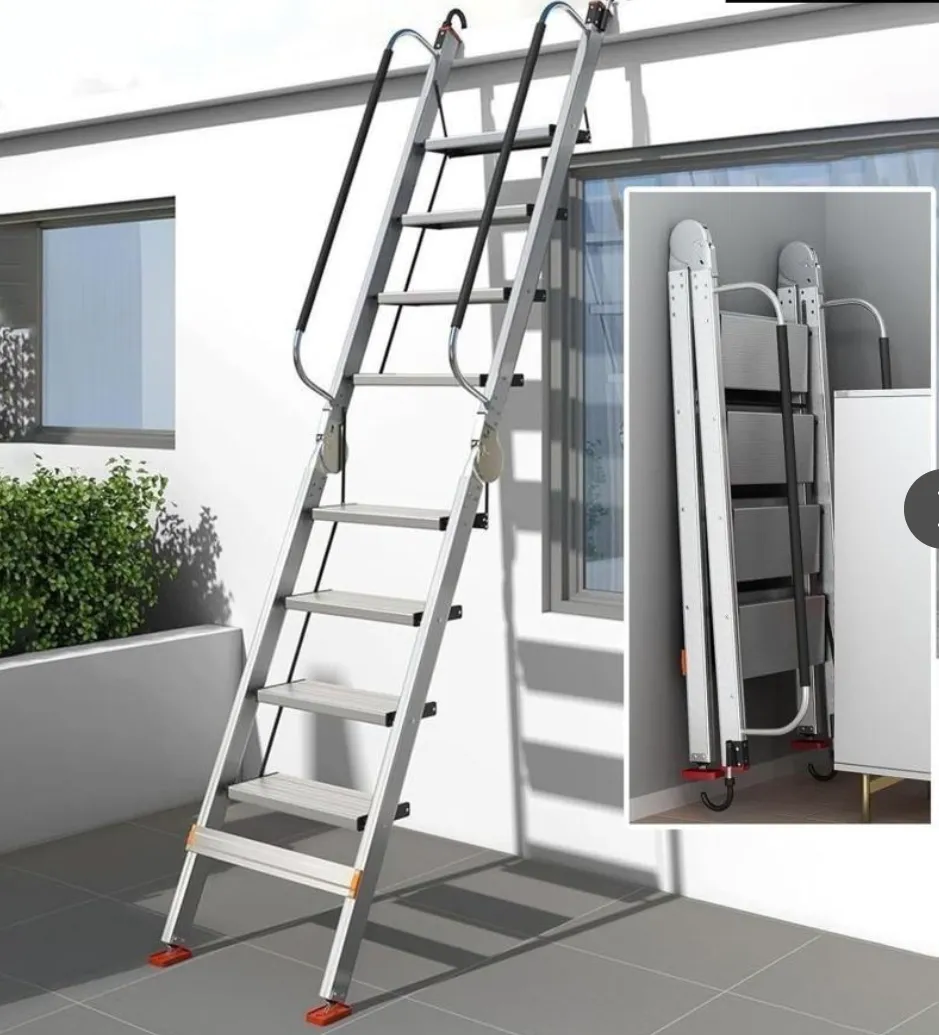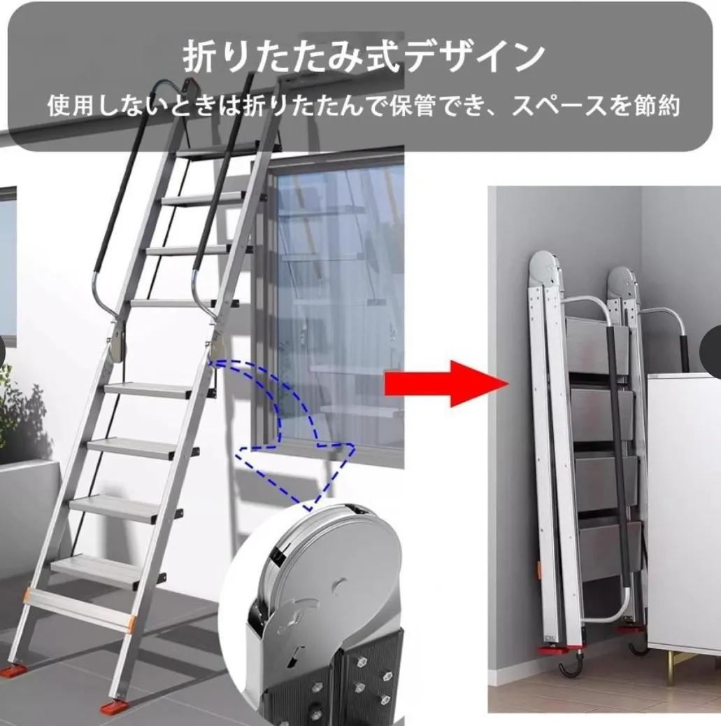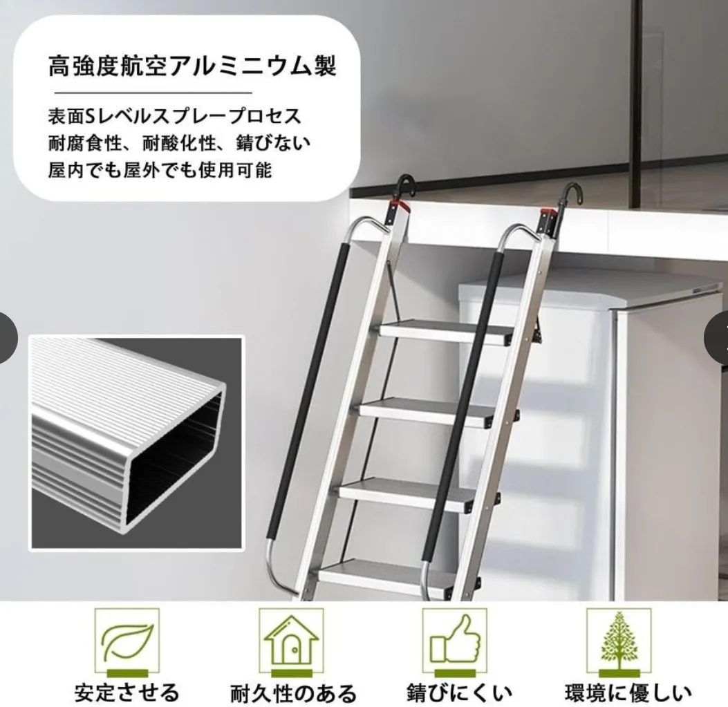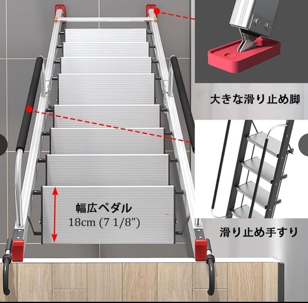 大好評☆ロフト はしご ロフト 階段 8段 屋根裏 階段 滑り止め手すり付き折りたたみ式ロフトはしご アルミ屋根裏はしご 多機能ロフトはしご 幅広のペダル 省スペース