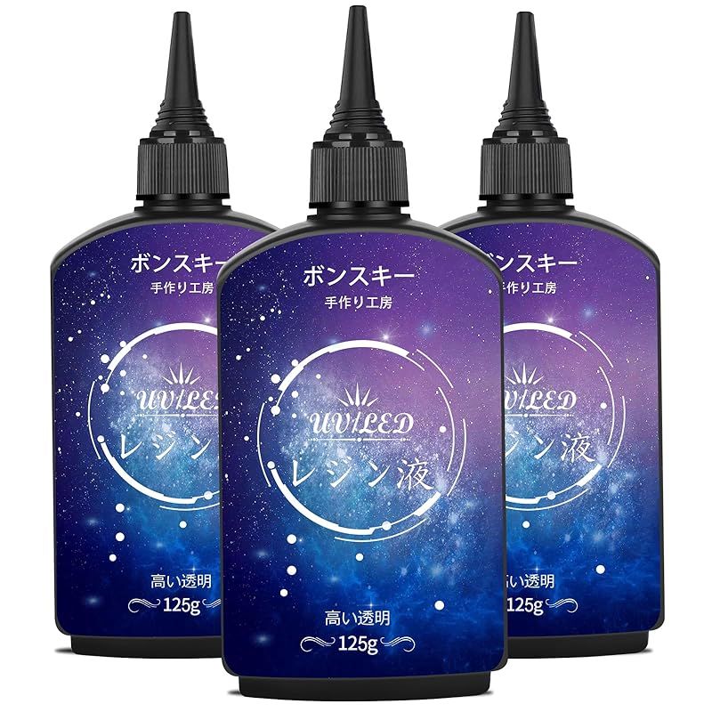 【商品概要】 高い透明度と薄いにおい:(意匠登録1776576号、年間最もクリエイティブで人気のあるデザイン。)成形レジン液の透明度がとてもいいです!Bonsky(ボンスキー)レジン液は黄色くなりにくいです。透明パルプを合わせると、色がとても鮮やかです!良質で無害な材料で作られています。臭気が少なく、安全で環境にやさしいことに驚くでしょう。そして時間が経つにつれて簡単に黄色くなることはありません。 UV-LEDサポートと速い固形:UVレジン液は紫外線ランプやLEDランプと組み合わせて使用できます。高温の影響を受けやすく、硬化に要する時間が非常に短いです。太陽光でも簡単に液体を硬化させることができます。粘着感が少ないので、次の工程に素早く移行できます。経験者も初心者も使いやすいです。 粘度が適当で使いやすい:UVレジン液の粘度が適当で、型に入れやすいです。お客様が好きな色とアクセサリーを自由に組み合わせることもできます。それらはうまく溶け込むことができます。使いやすいです!ボンスキーレジン液は泡立ちにくいです。完璧な小さな尖った口のデザインは手作りDIY愛好家とレジン工芸の初心者に便利です。 幅広い用途とDIY:アートジュエリーDIY工芸品の制作、金型鋳造、レジンコーティング、工芸品装飾、鋳造、コーティングなどに非常に適しています。観賞用の手作り品として使えます。家族、友人、恋人、子供などにプレゼントすることもできます。これが一番いい選択です。 特別な注意:(Bonsky)と(ボンスキー)は同一ブランドです。現在パッケージデザインをリニューアルしておりますが、日本地域では(ボンスキー)ブランドを使用いたします。パッケージ内容:Bonsky(ボンスキー) UVレジン液 125g*3、尖ったボトルキャップ*3、アルミフィルム封止 オープナー*1。ご質問がございましたら、お問い合わせください。