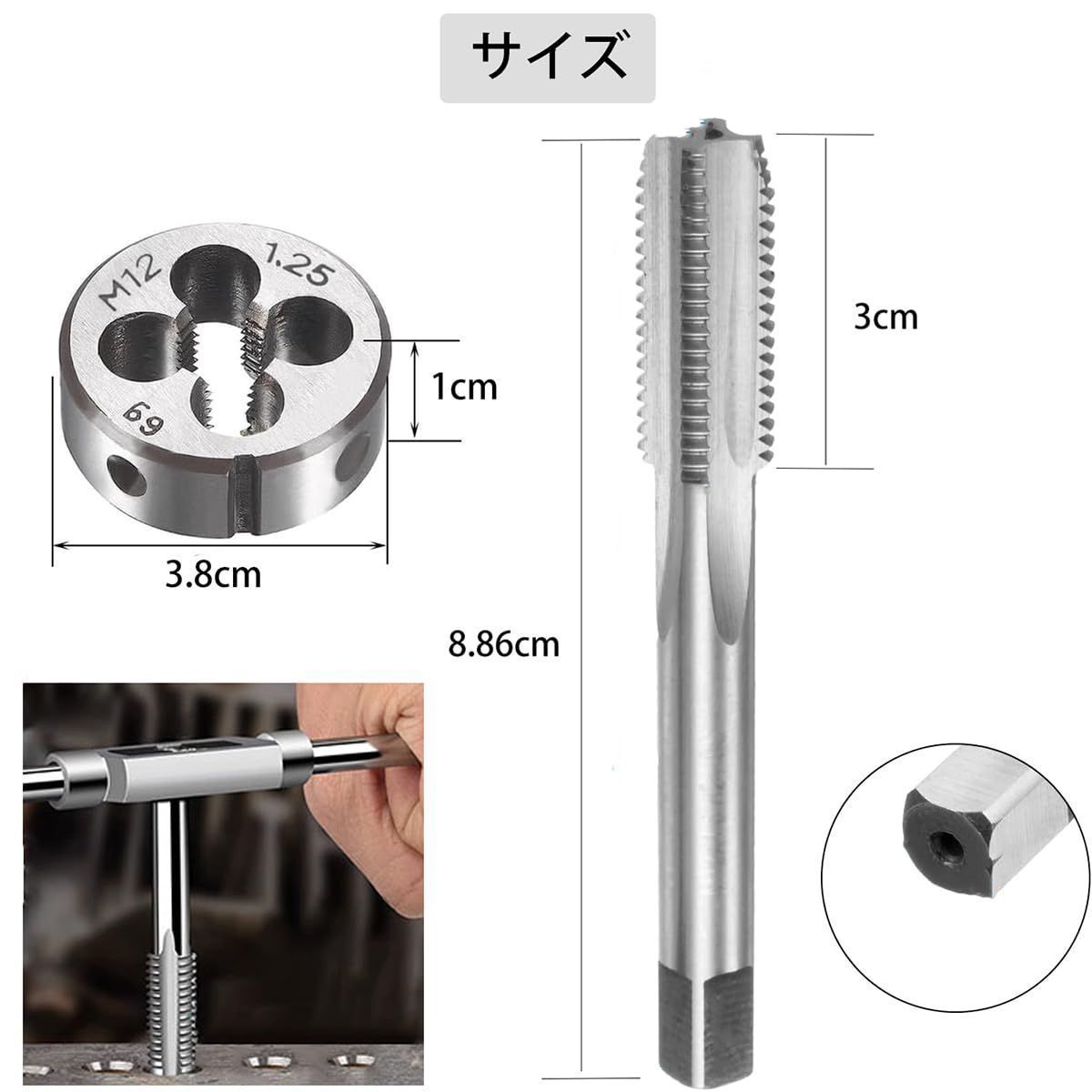 タップダイスセット M12 X 1.25 ねじ切りタップとダイスセット 手動スレッドタッピングツール メンテナンス用