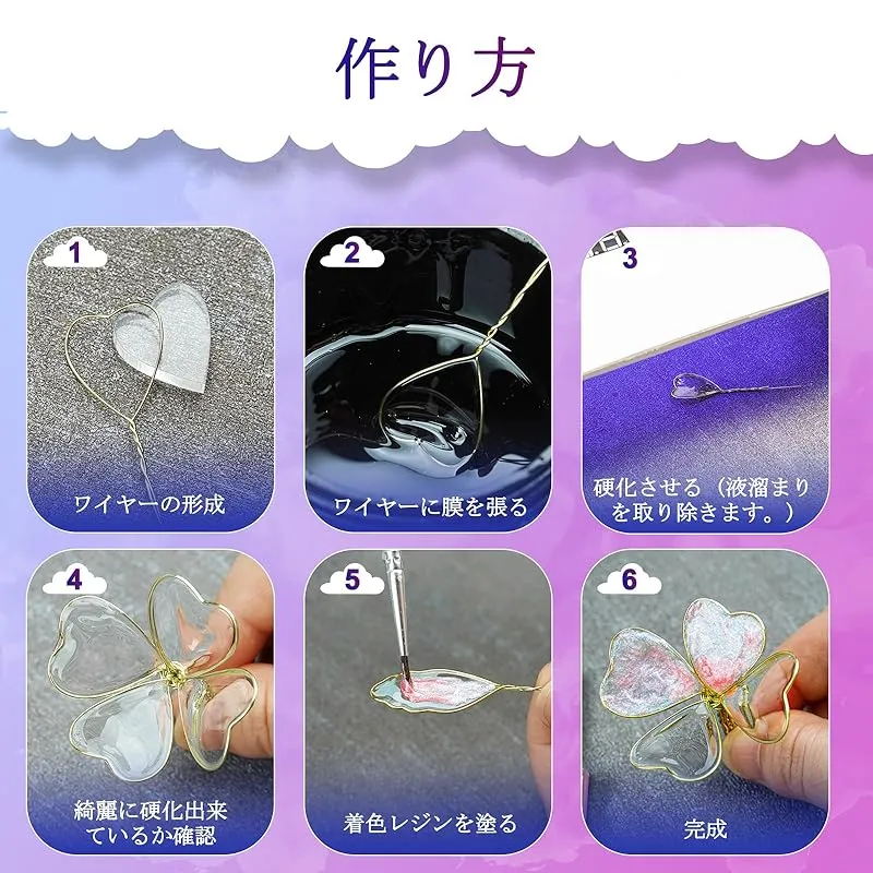 【商品概要】 LEDディップアートレジンとはワイヤーで作った輪郭にディップして(漬けて・くぐらせて)膜を貼ることができる液です 使い方簡単:ワイヤーの形成ワイヤーに膜を張る硬化させる着色レジンを塗る完成 レジン液にくぐらせるだけで繊細な花びらの作品が作れちゃう 硬化が早い:LEDディップアートレジンは「レジン液」のため、UV&LEDランプで硬化できます。仮硬化約5秒と、とっても速い!ディップ作品の作業効率がグンと上がります たくさん用途:粘性が高く、ワイヤーで作った、花や葉の輪郭に膜を張ることや球体などのコーティングが簡単・綺麗にできます、着色にも使用可能 特徴:シワになりにくい、大きめサイズでも(約3cm程度)膜が張れます!匂いも少なく作業がしやすい、仕上がり作品は黄変しにくい、進化したLEDディップアートレジンで手軽にフラワーアートを楽しめましょう