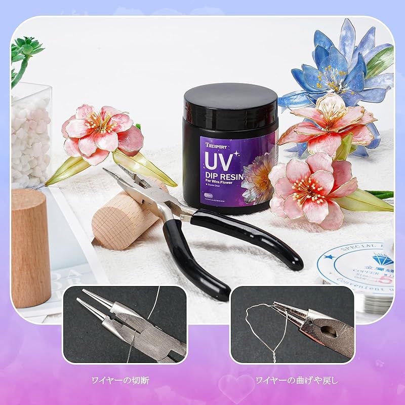 Teexpert LEDフラワー ディップレジン液 100g 大容量 ディップアートレジン フラワーアクセサリー UVレジン液 ハンドメイド レジンクラフト コーティング液 着色も可能 取扱説明書付き 1