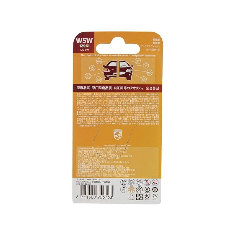Philips(フィリップス) ポジションランプ T10(W5W) 12V 5W プレミアムヴィジョン ライセンスランプ ルームランプ 補修用 輸入車対応 2個入り 車検対応 PHILIPS PremiumVision 12961B2