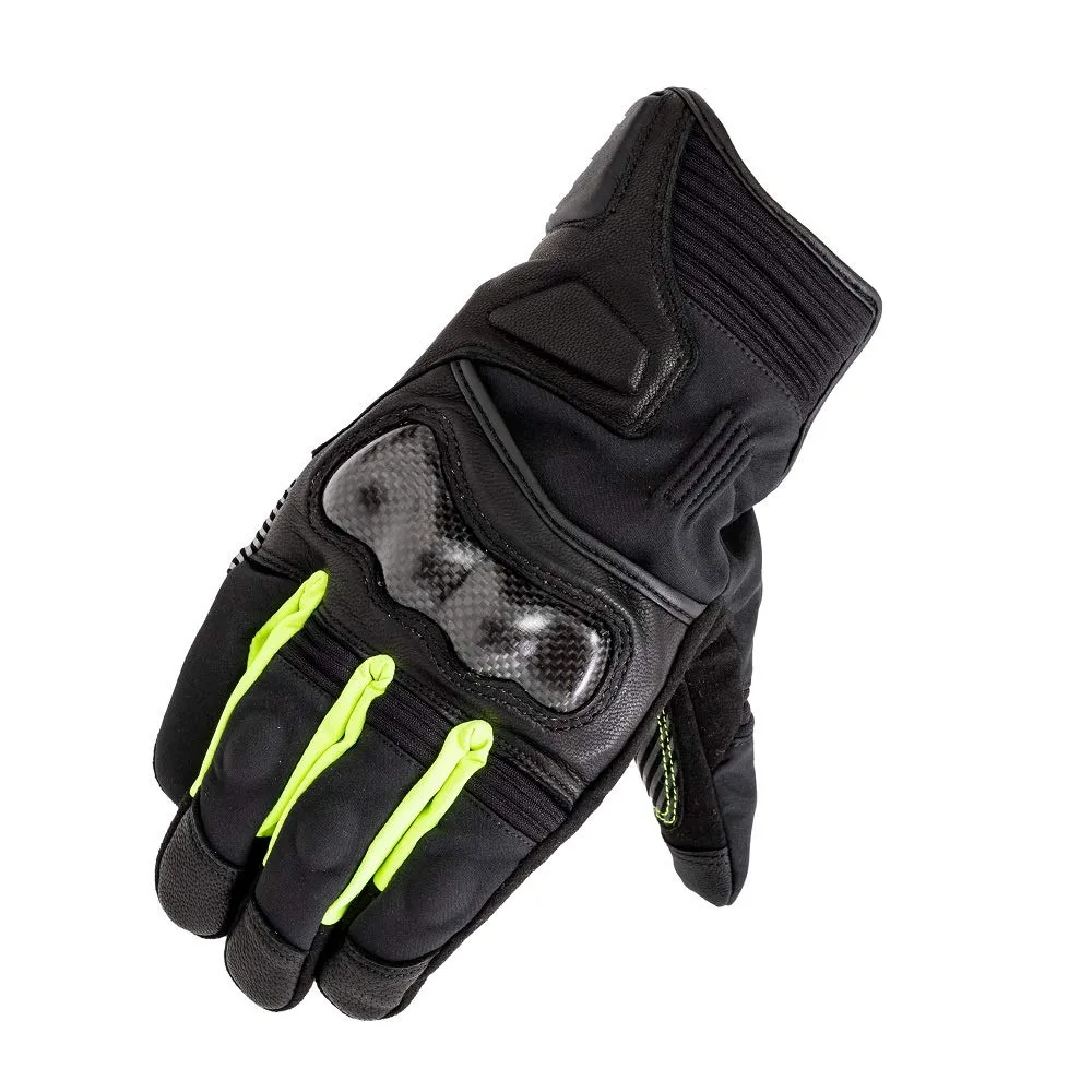 カーボン素材のプロテクターをナックルと掌部に装備したデザインと安全性を兼ね備えたウインターグローブです。