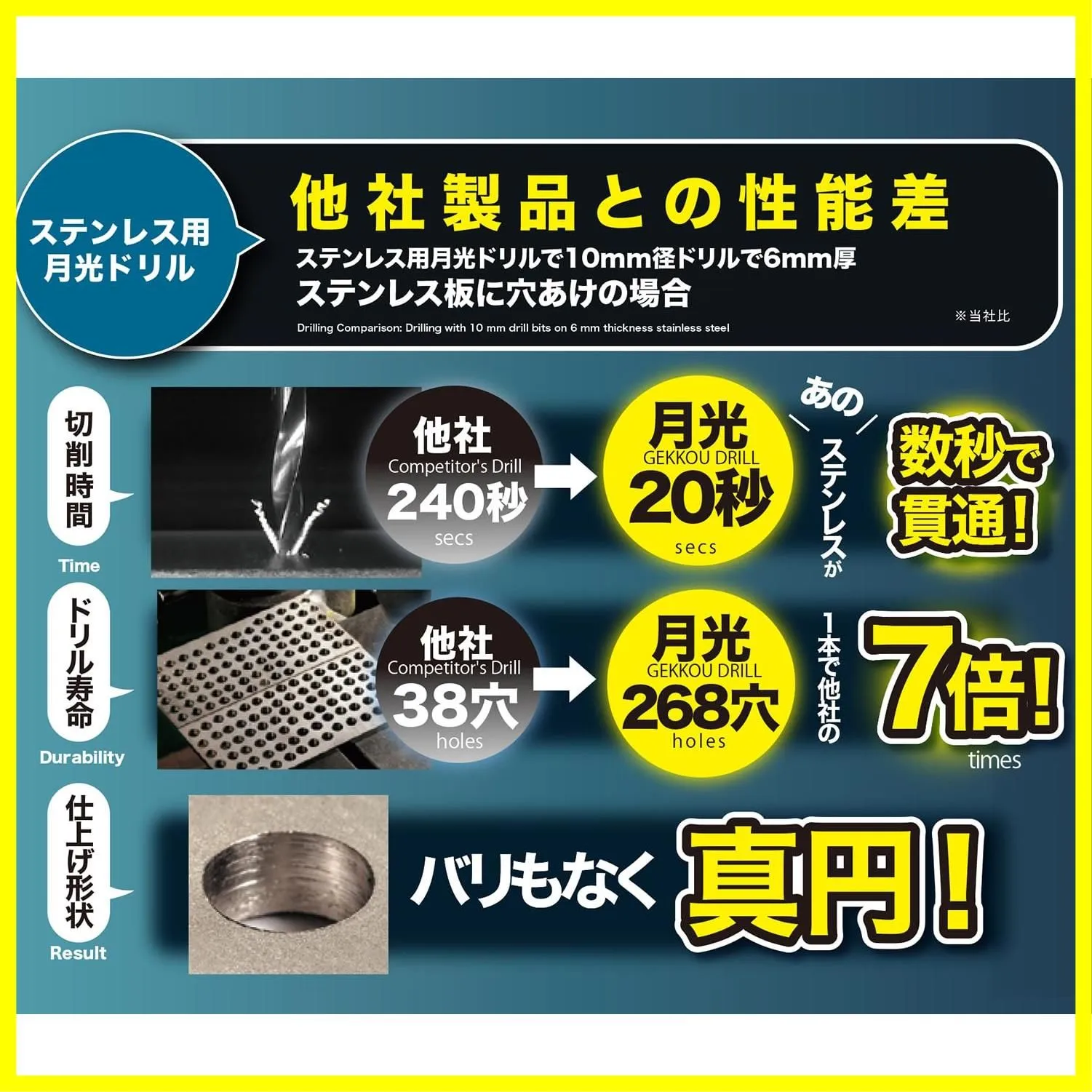 ・難削材と言われているステンレスは勿論、一般鋼やアルミなどの穴あけ作業に最適