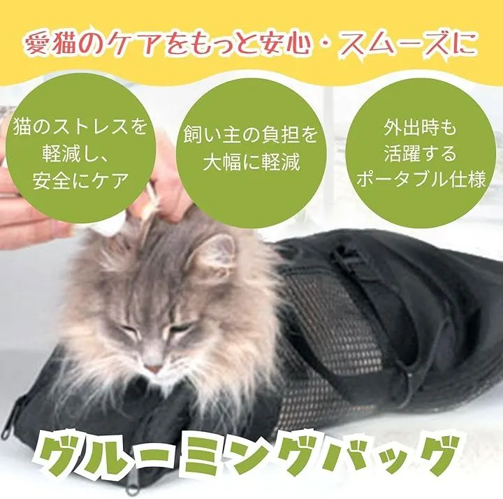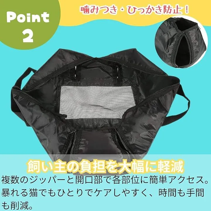All Trust 猫 つめきり 暴れない 便利グッズ 猫爪切り 対策 噛み付き防止 グルーミングバッグ (ブラック)