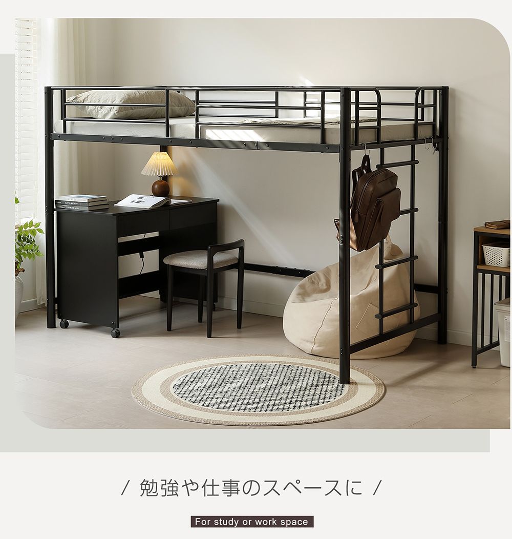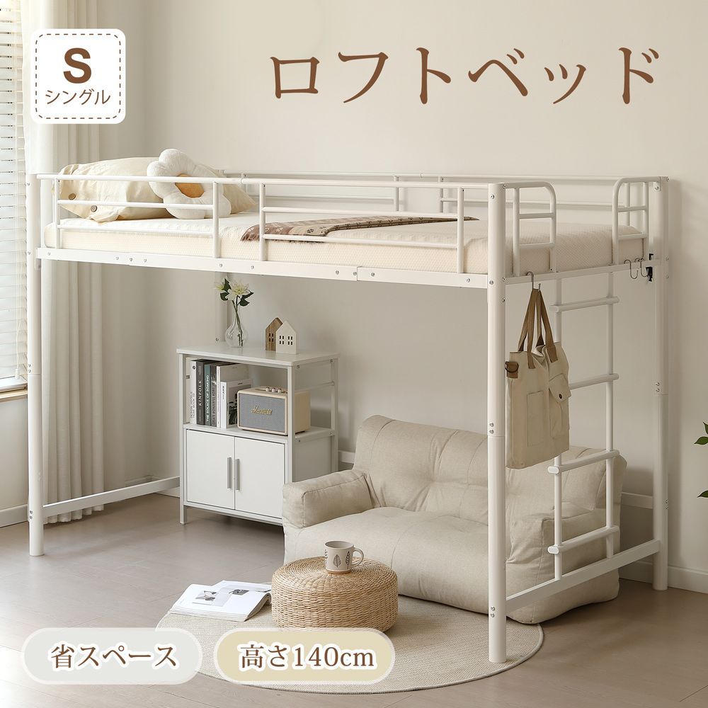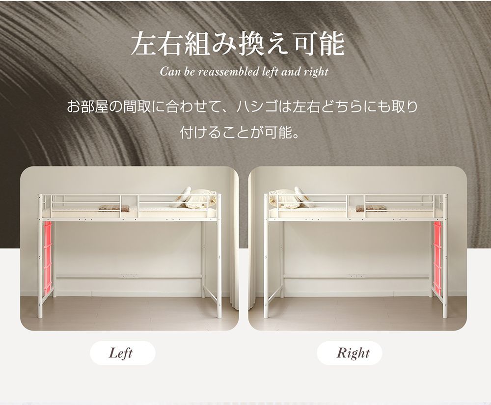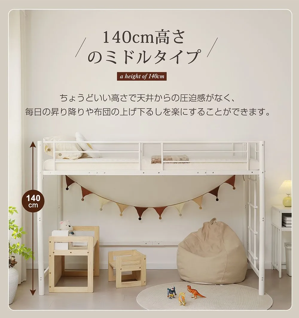 ロフトベッド ミドルタイプ ロフトベット パイプベッド ロフト シングル ロータイプ 左右入れ替え 大人用 子供ベッド ミドルベッド 子供 ベッド 小さめ シングルベッド 下収納 省スペース スチール 子供部屋 はしご付き