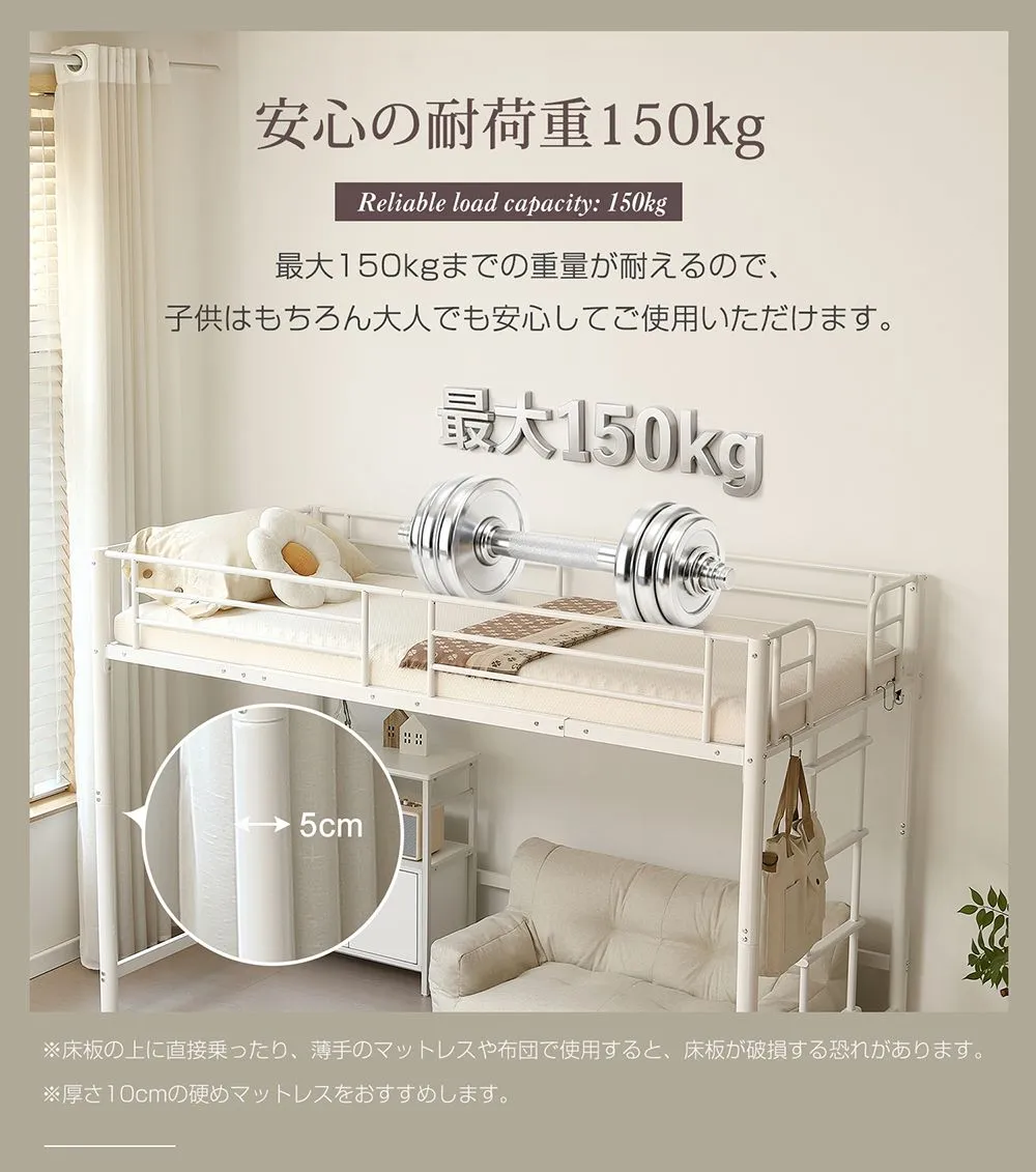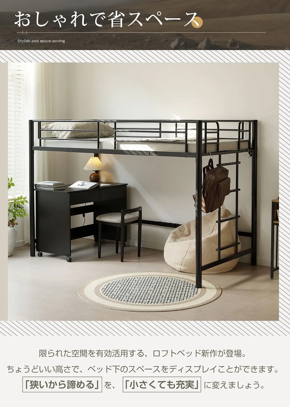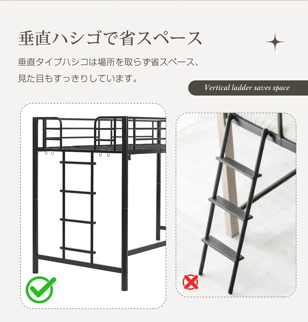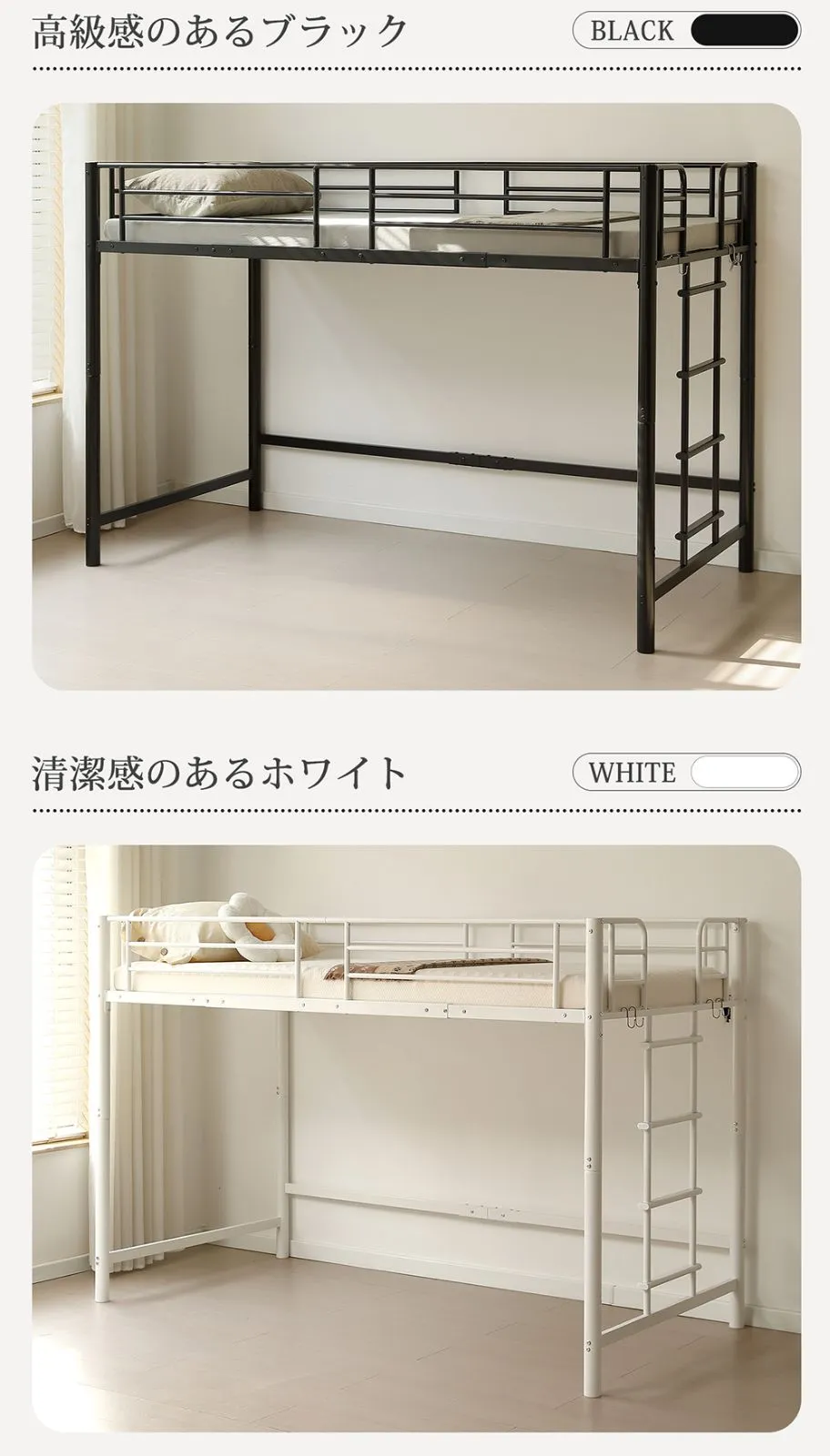 ロフトベッド ミドルタイプ ロフトベット パイプベッド ロフト シングル ロータイプ 左右入れ替え 大人用 子供ベッド ミドルベッド 子供 ベッド 小さめ シングルベッド 下収納 省スペース スチール 子供部屋 はしご付き